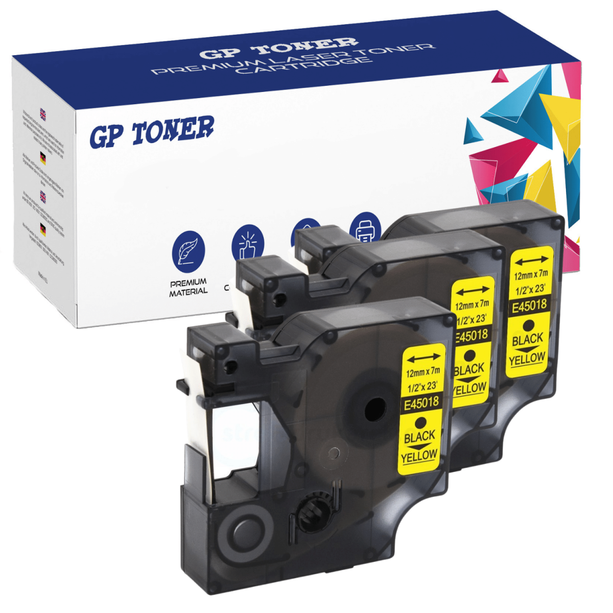 3x Dymo Tape D1 45018 Yellow Black 12mmx7m GP-DY45018 x3