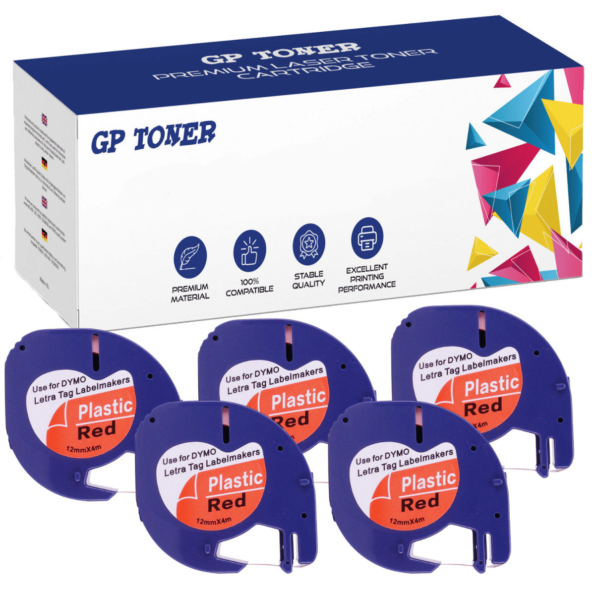 5x Dymo LetraTag 59424 Tape 12mm x 4m Red Plastic - replacement GP-DY59424 x5