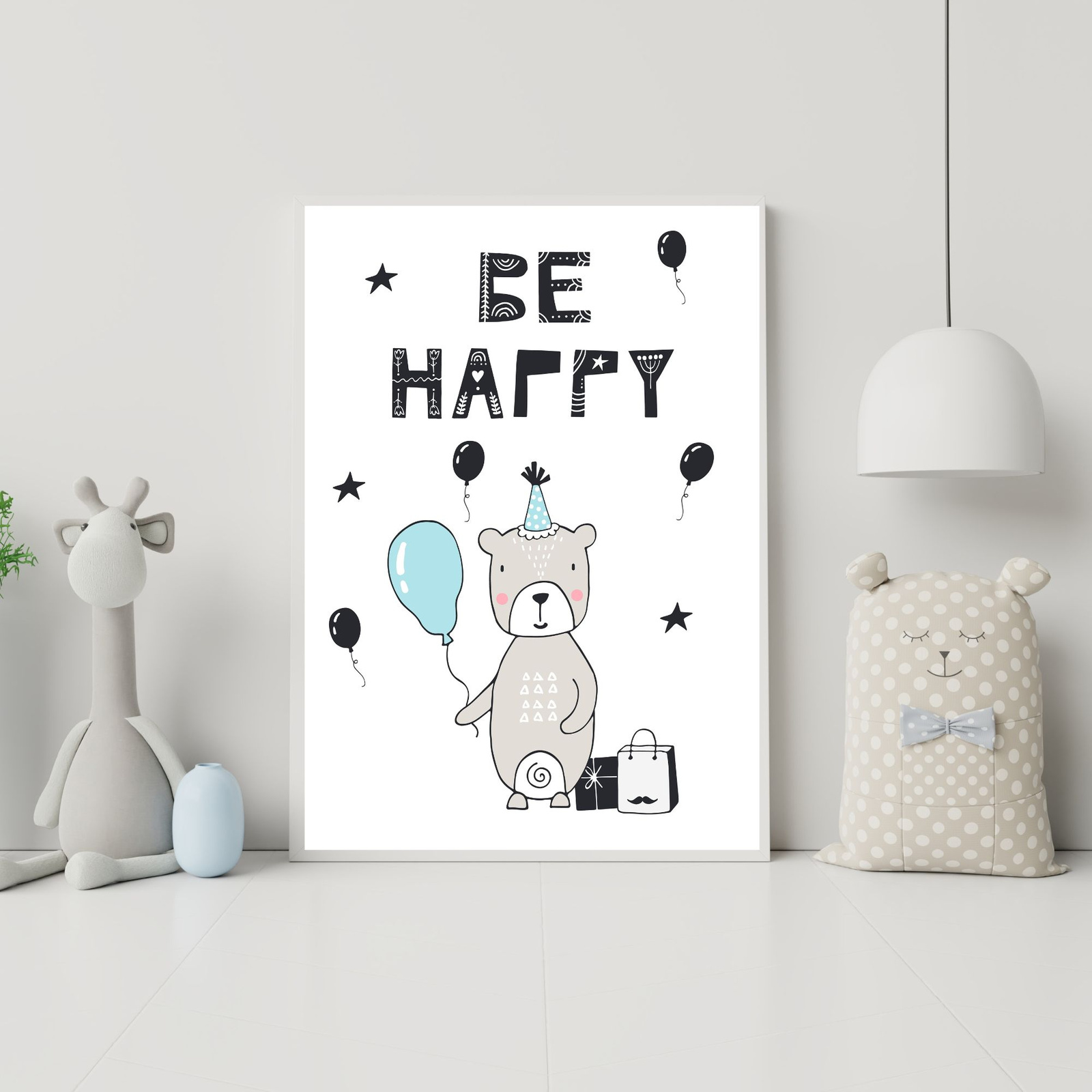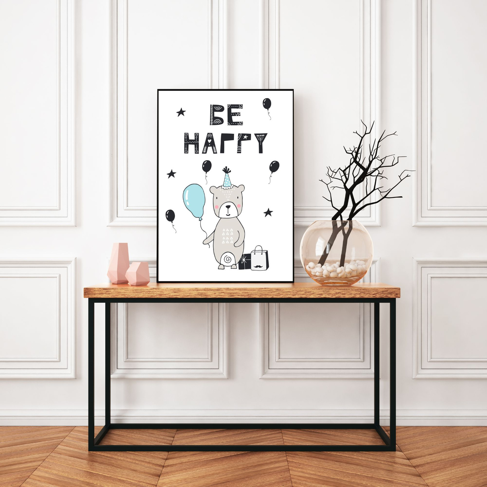 Be happy Birthday Poster 21X29.7 cm + gray stone frame