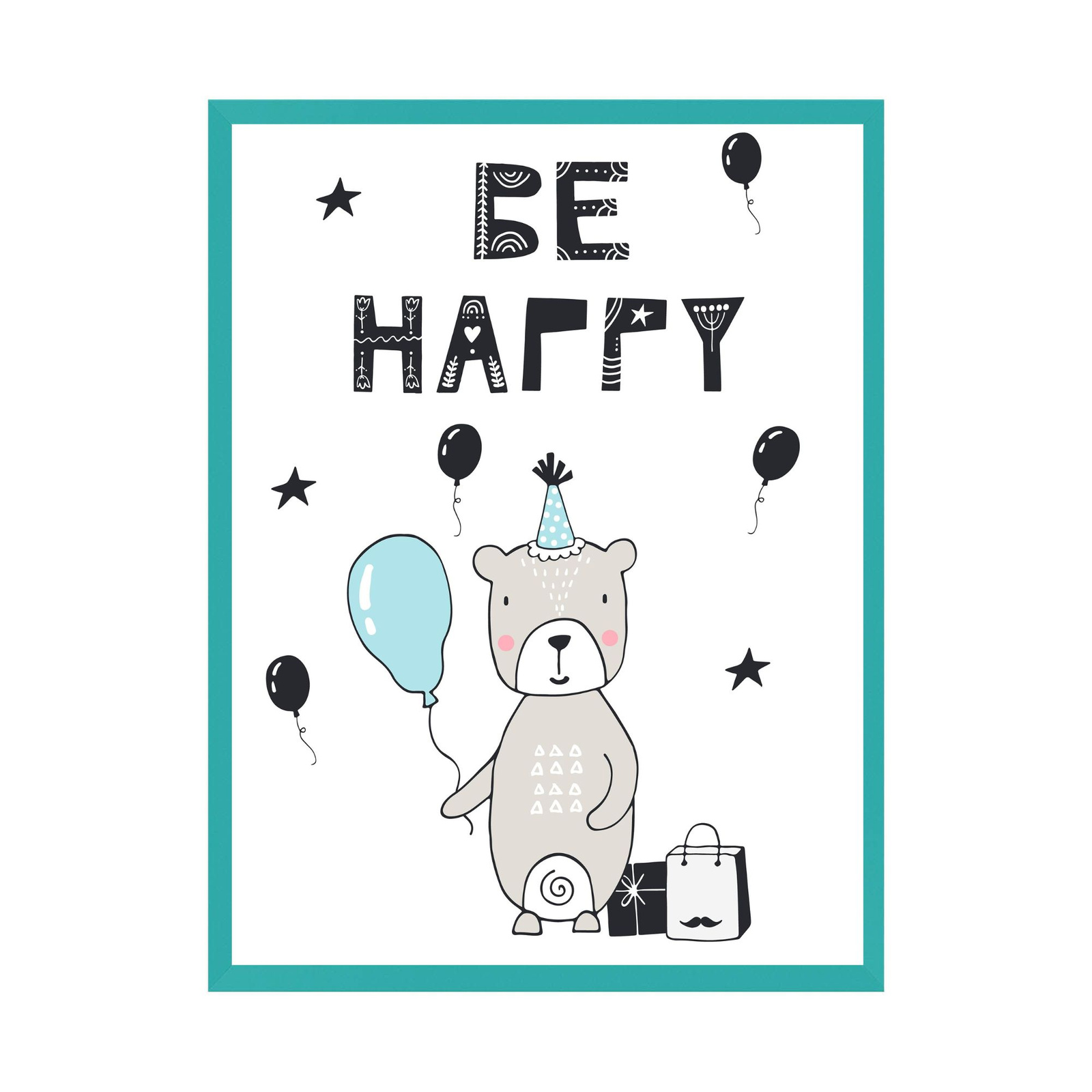 Be happy Birthday Poster 30X40 cm + turquoise sea frame