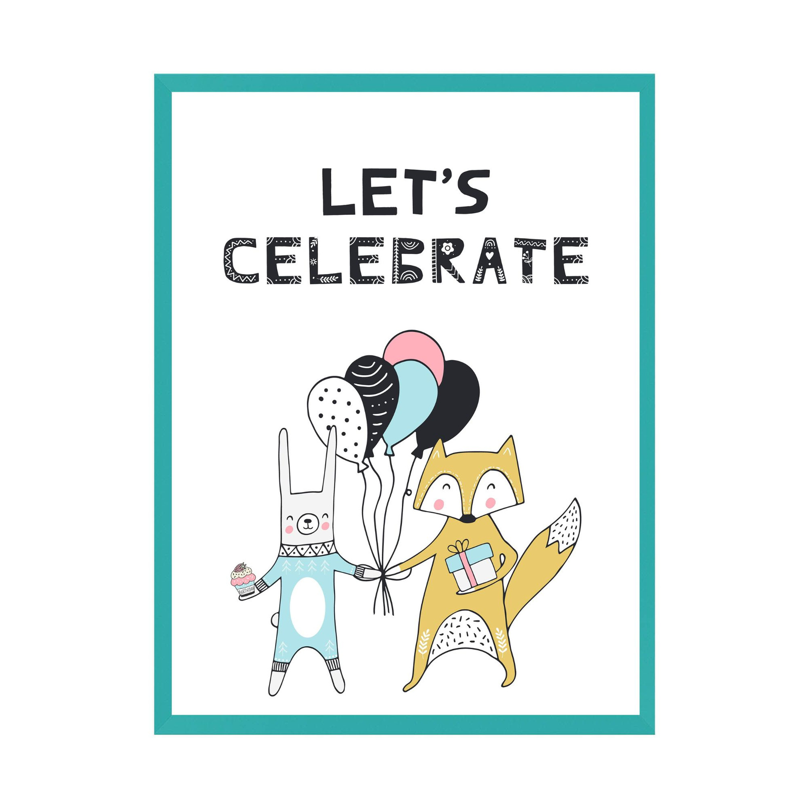 Birthday Poster Let's celebrate_2 24X30 cm + frame turquoise sea