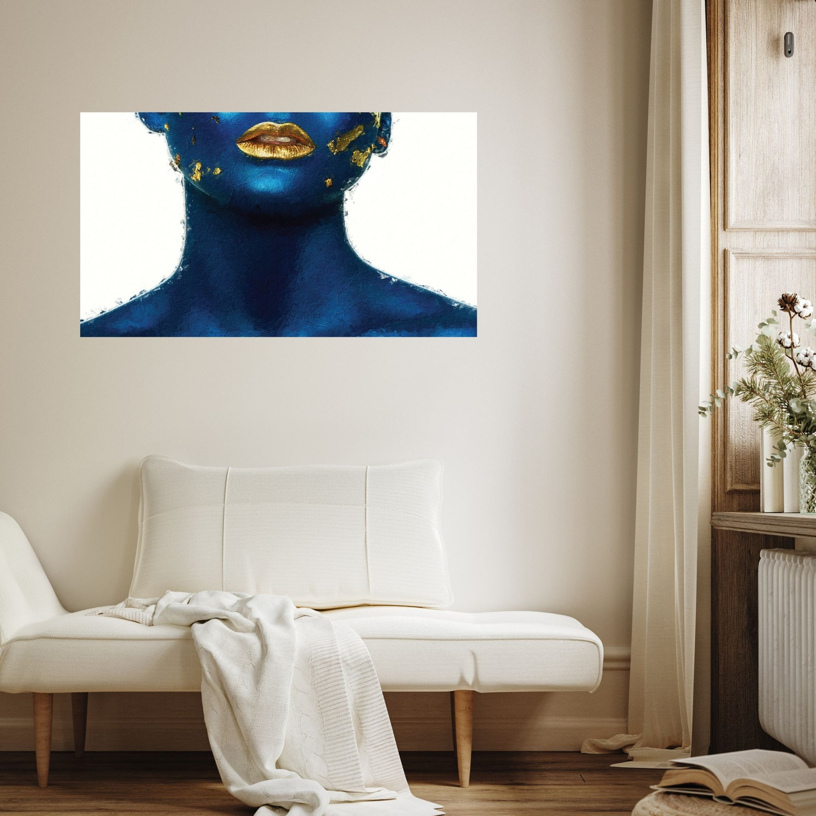 Canvas Print Art Painted Woman Golden Lips 100x80 cm