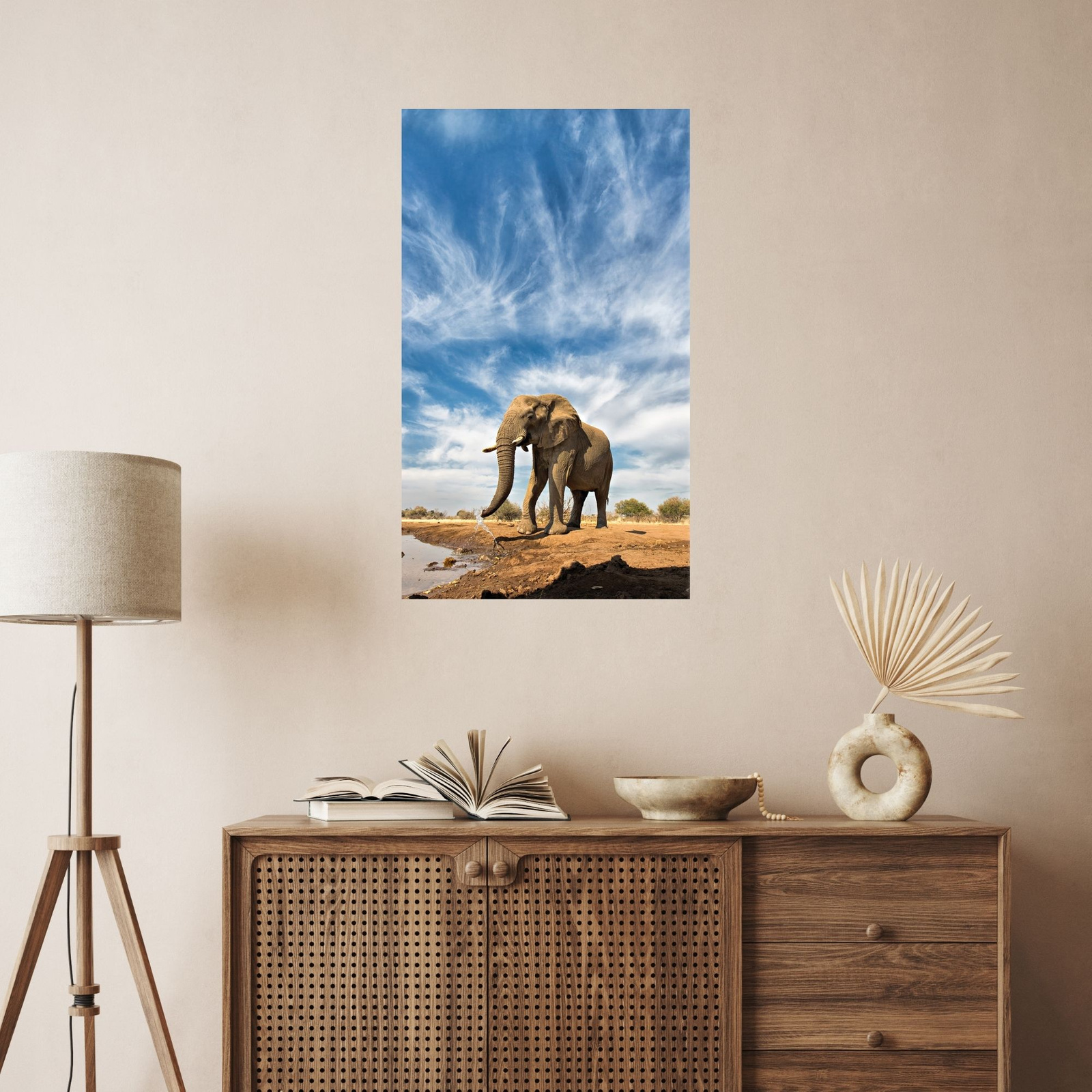 Canvas Print Big Elephant on the Savannah Sand 80x120 cm