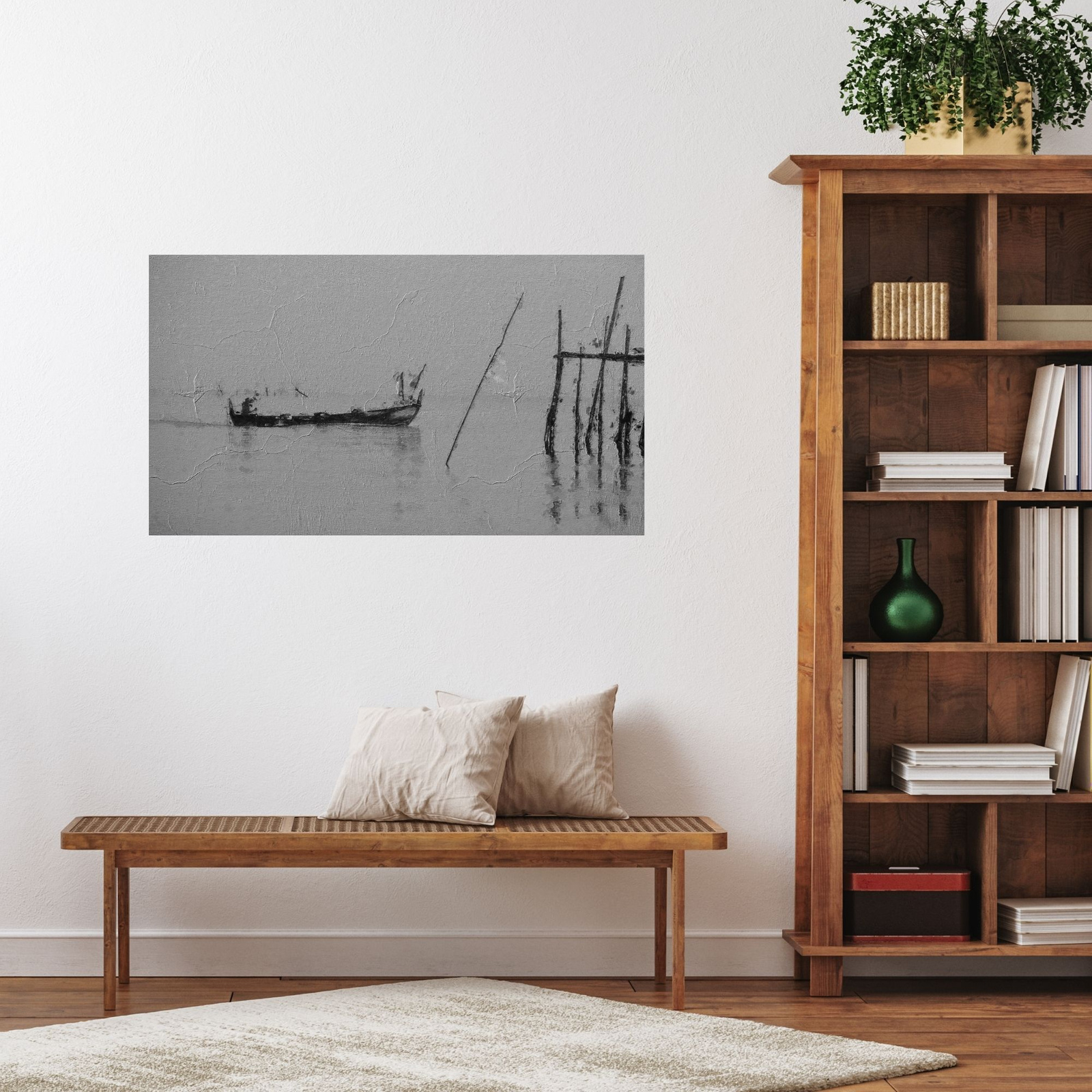 Canvas Print Black and White Boat on the Water Retro 100x80 cm