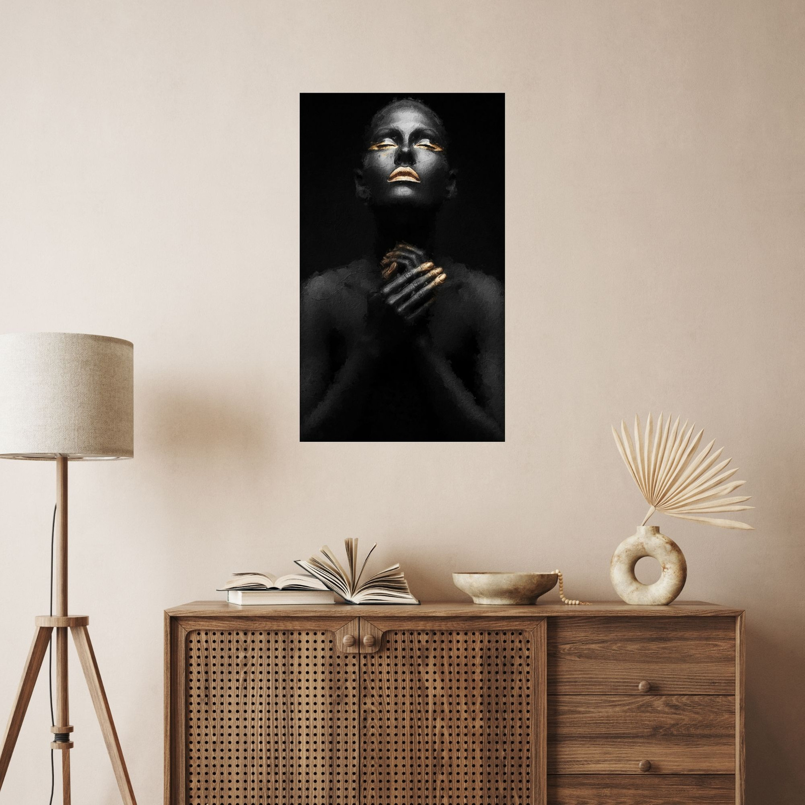 Canvas Print Black Woman Gold Nails Lips Eyes 80x120 cm
