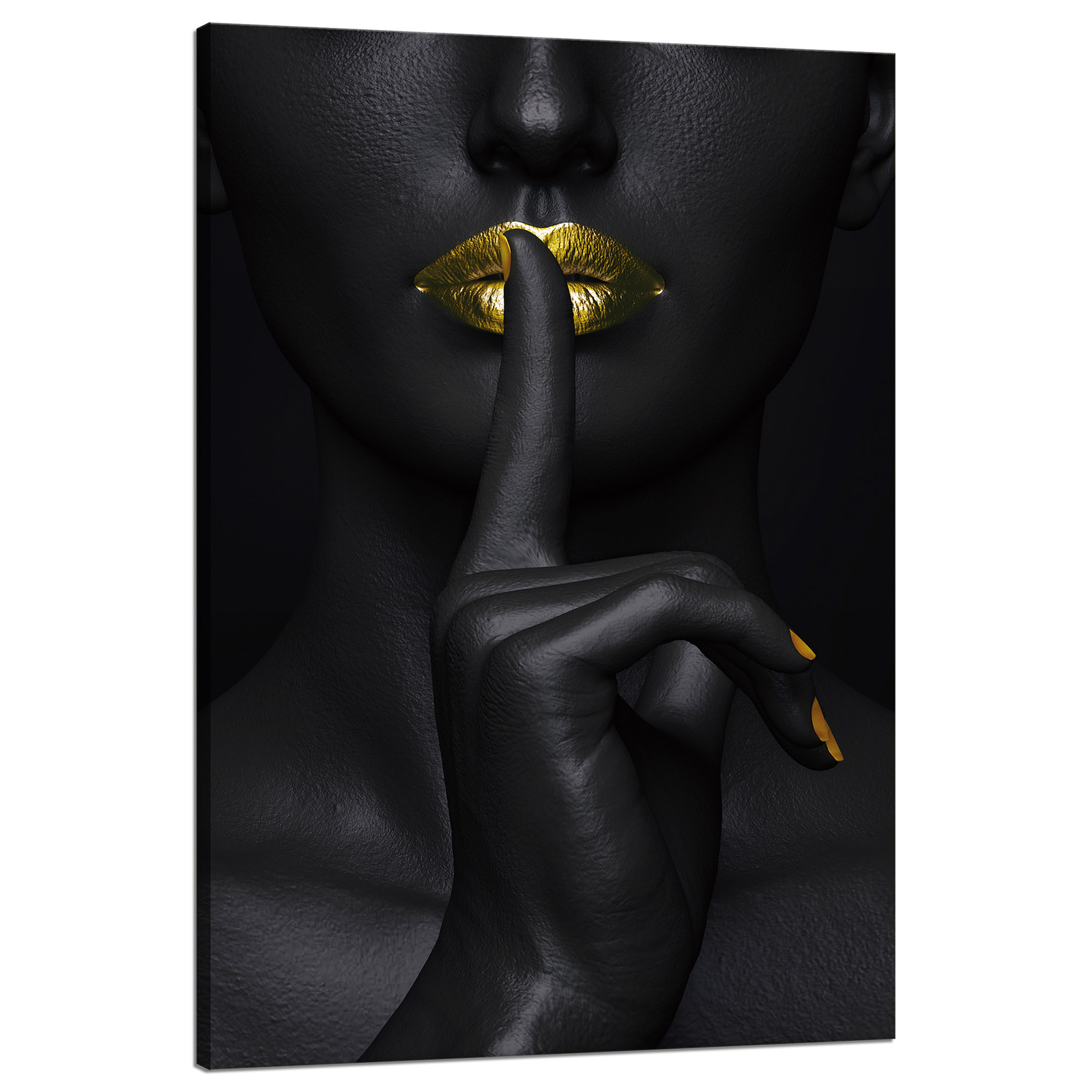 Canvas Print Black Woman Silence Golden Lips 80x120 cm