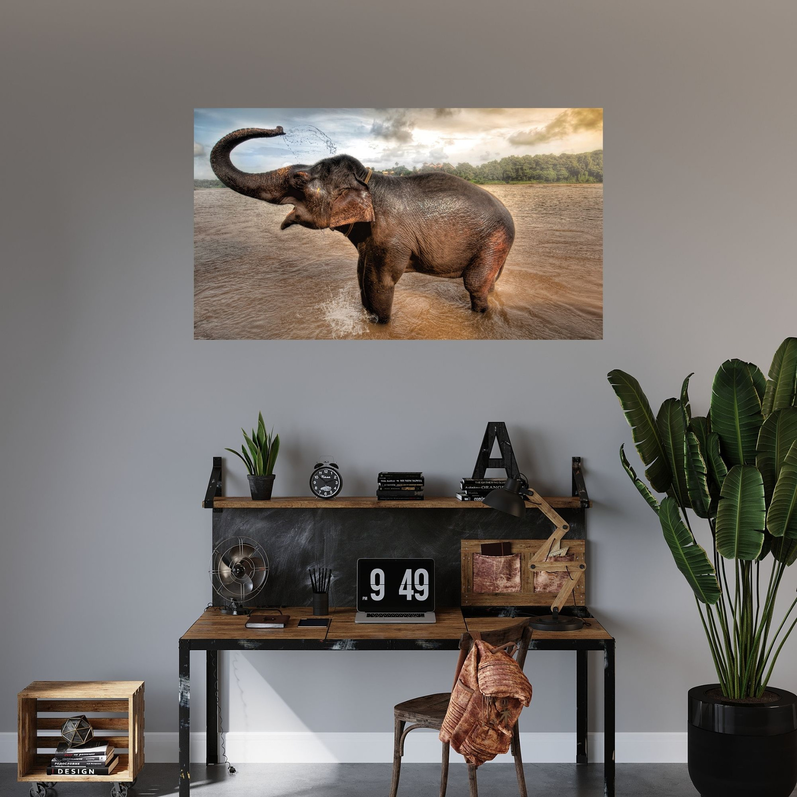 Canvas Print Elephant Water Clouds Nature Bath 100x80 cm