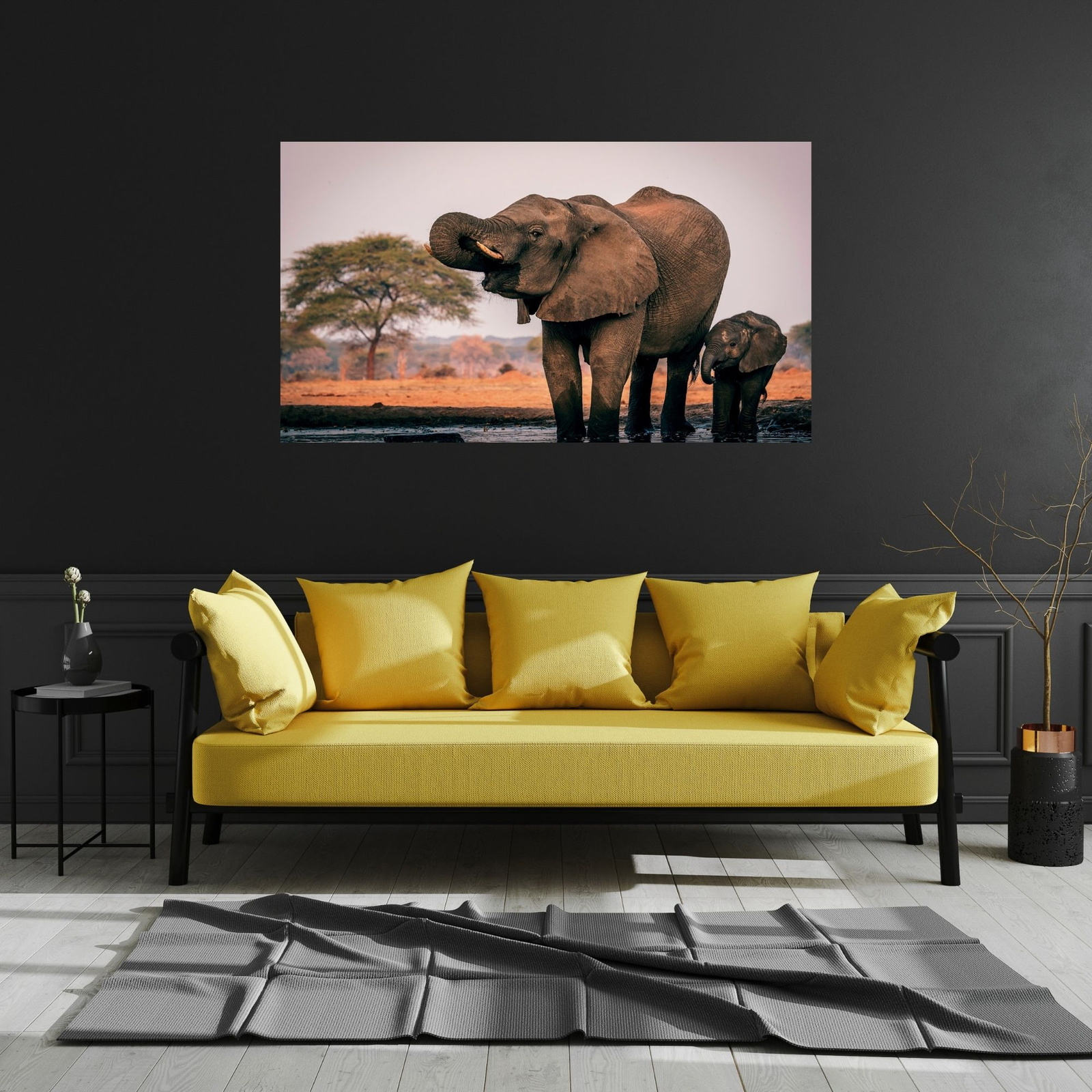Canvas Print Elephants in Water Africa Nature 100x80 cm