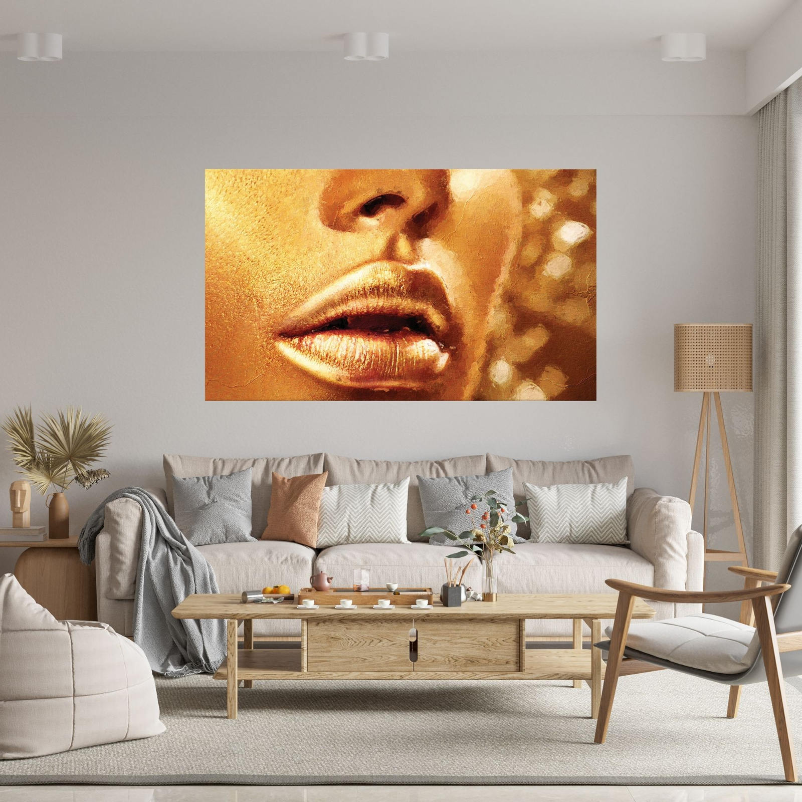 Canvas Print Golden Face and Lips Art Style 100x80 cm