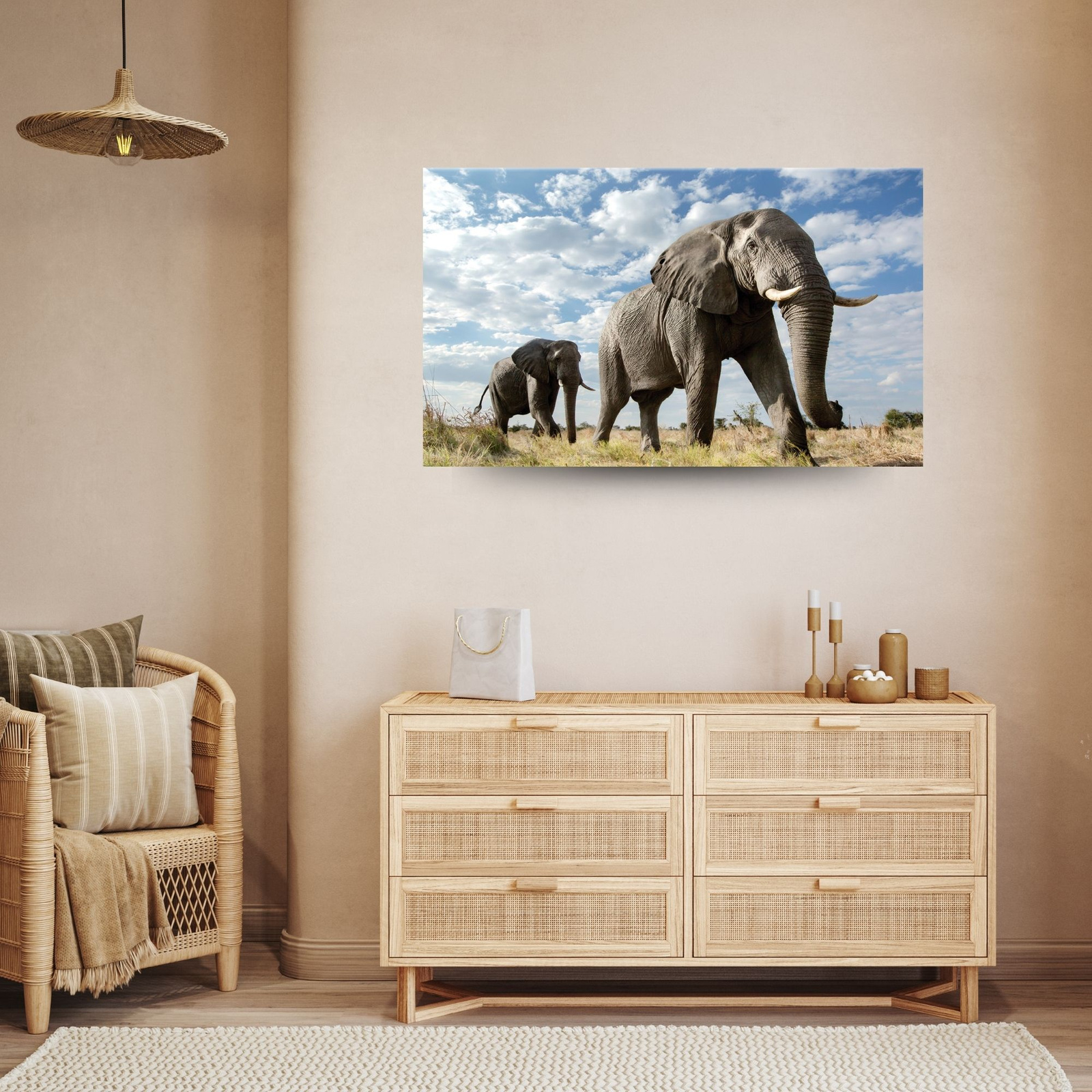 Canvas Print Large Gray Elephants Africa Nature 100x80 cm