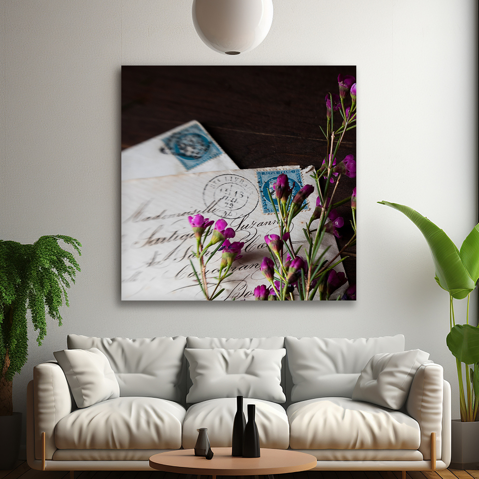 Canvas Print Letters Purple Flowers Vintage 90x90