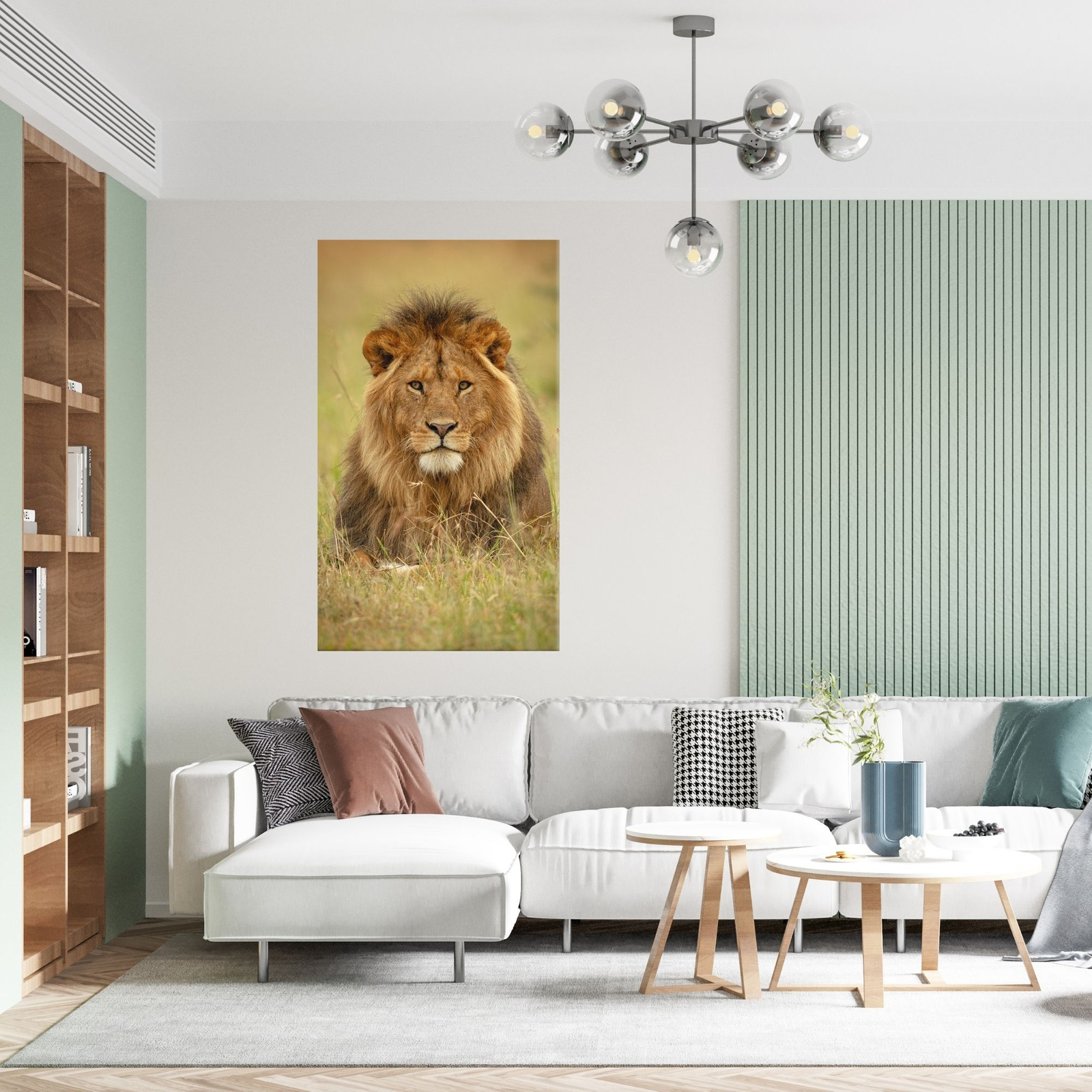 Canvas Print Lion on Grass Animal Nature 80x120 cm