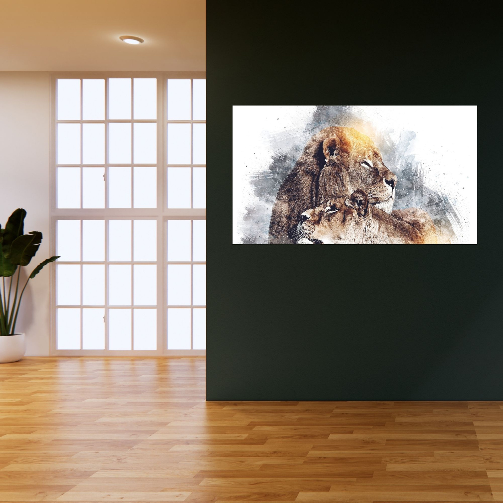 Canvas Print Modern Art Lion Pair Nature 100x80 cm
