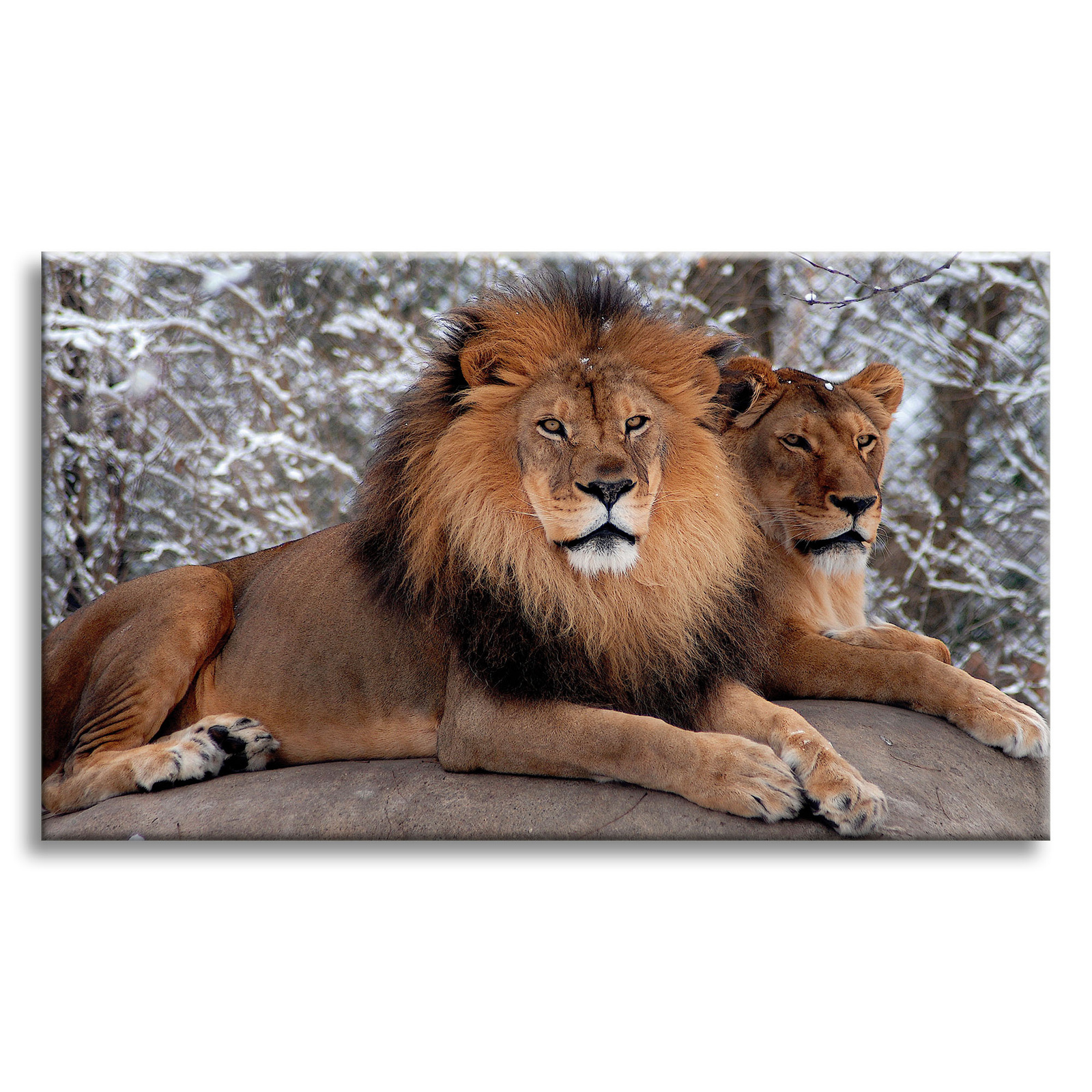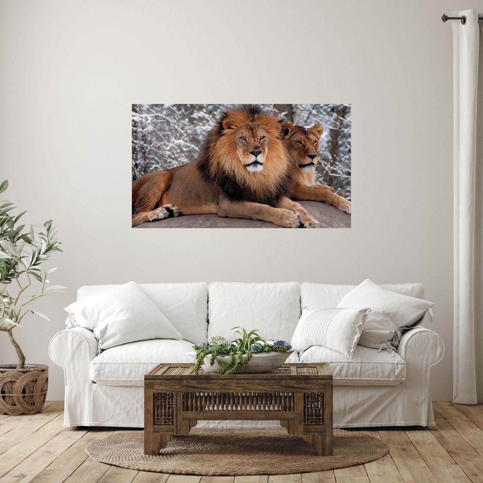 Canvas Print Pair of Lions Lying Nature 100x80 cm
