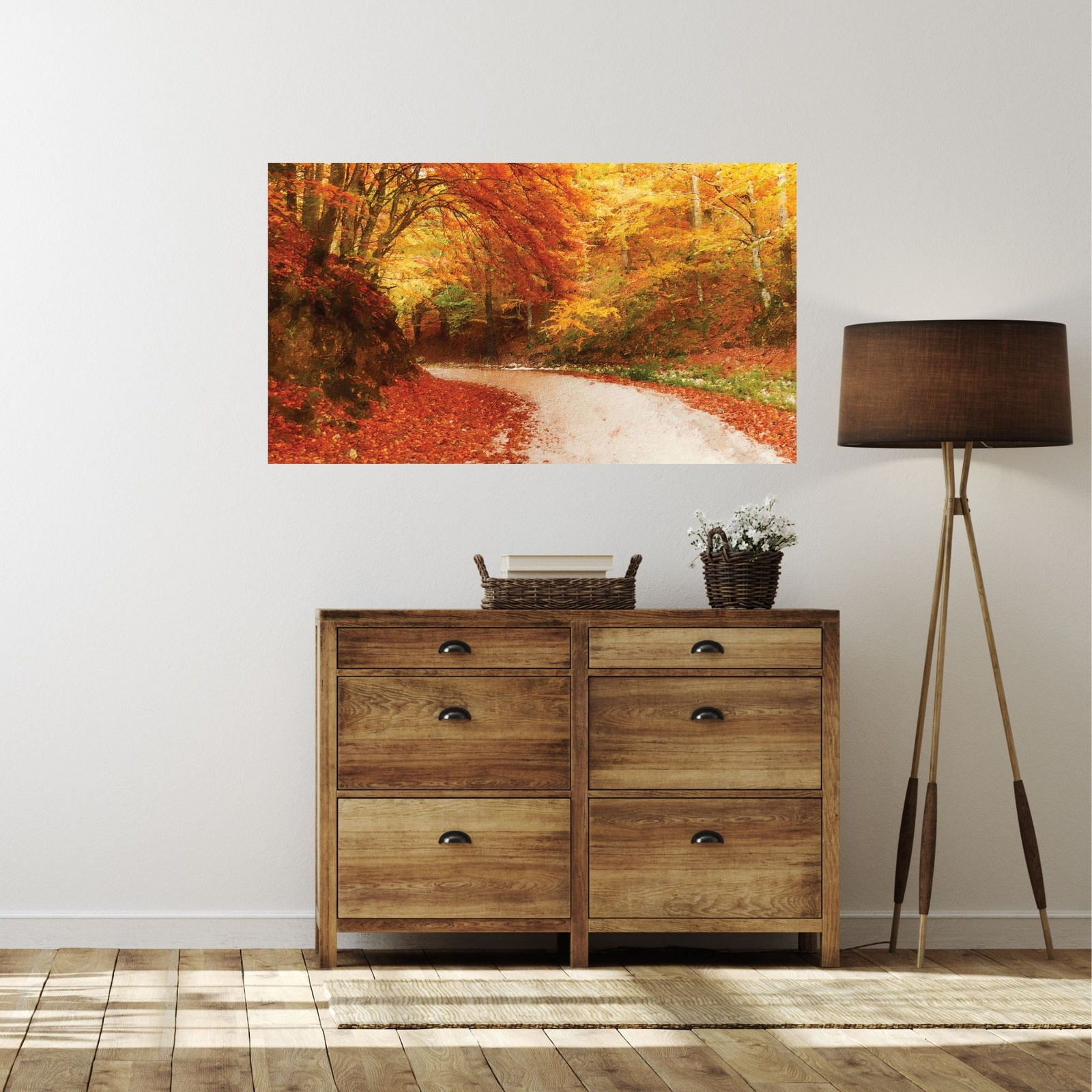 Canvas Print Path in Autumn Forest Colorful Leaves 100x80 cm