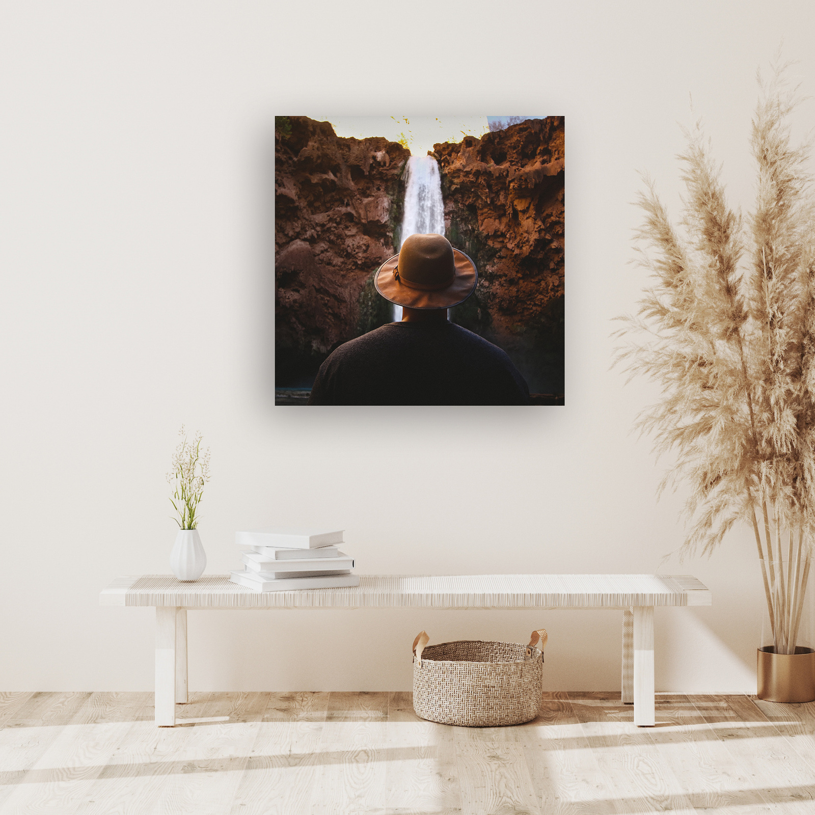 Canvas Print People Waterfall Mountains 90x90