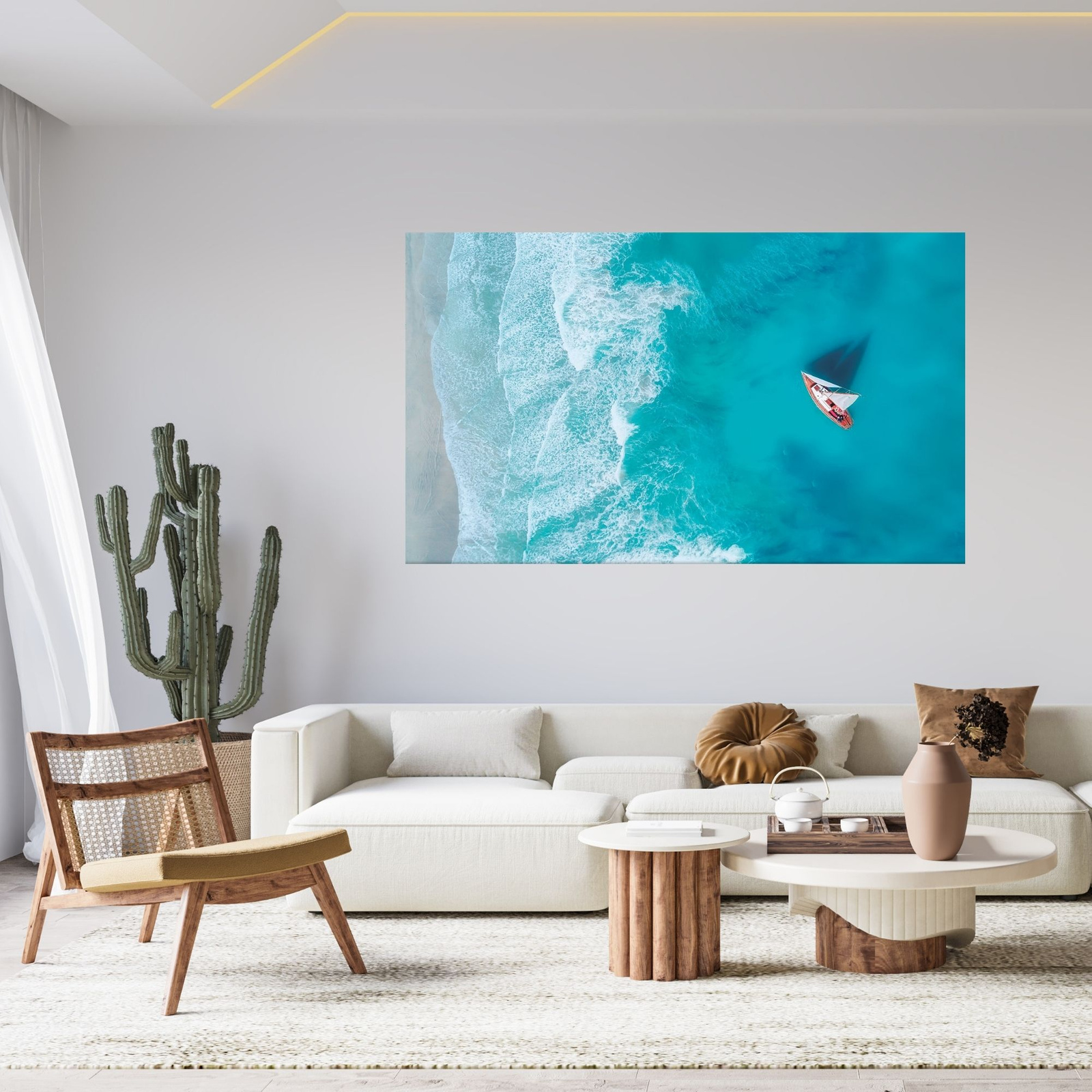 Canvas Print Sailboat on Water Waves 100x80 cm