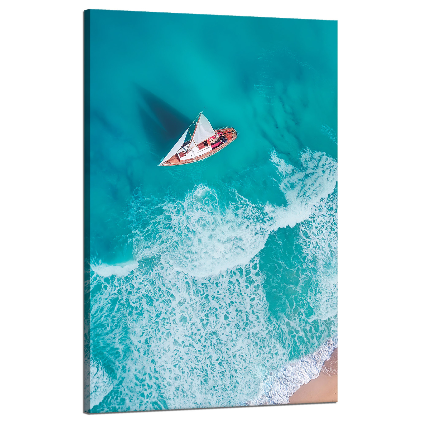 Canvas Print Sailboat Waves Sand Shore 50x80 cm