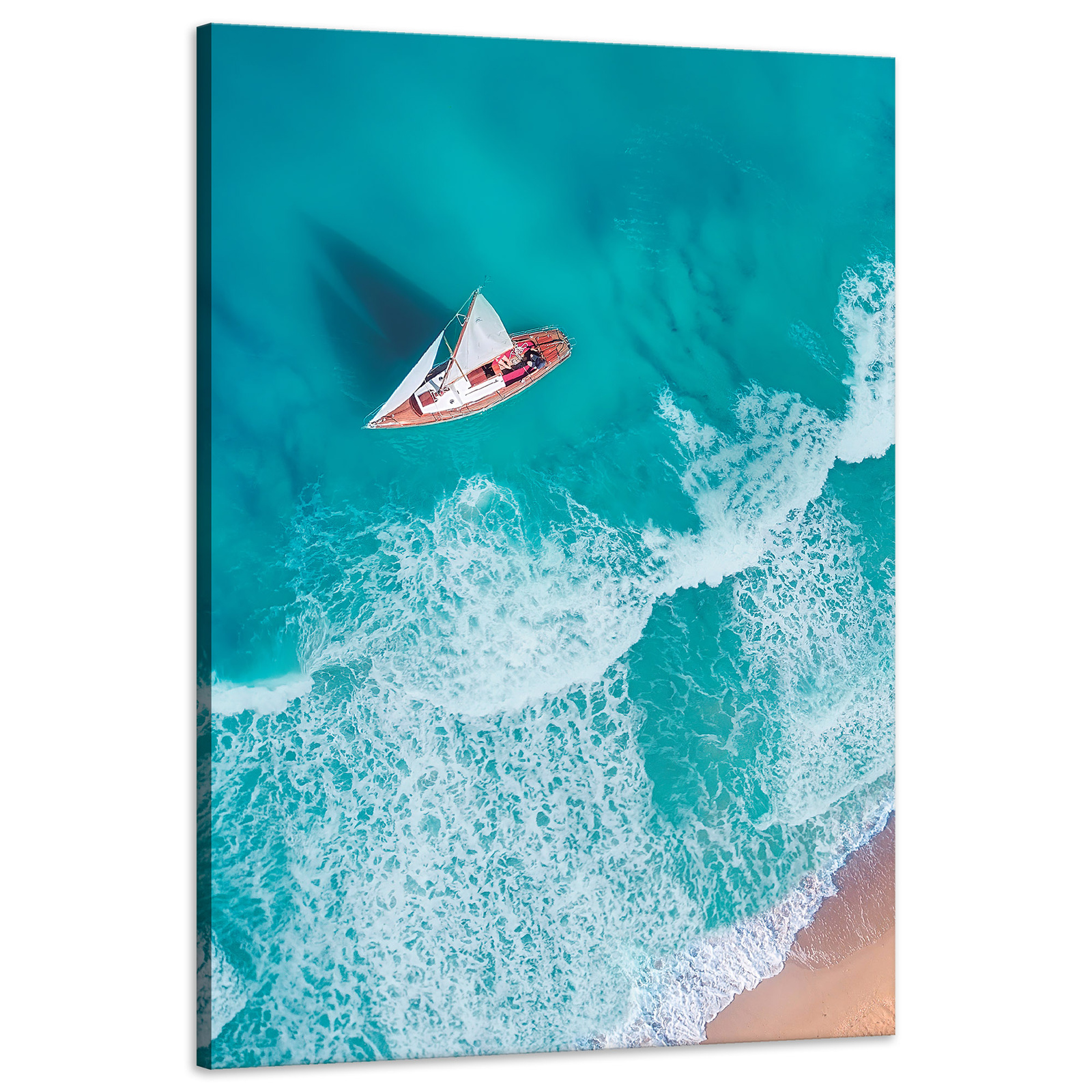 Canvas Print Sailboat Waves Sand Shore 60x90 cm