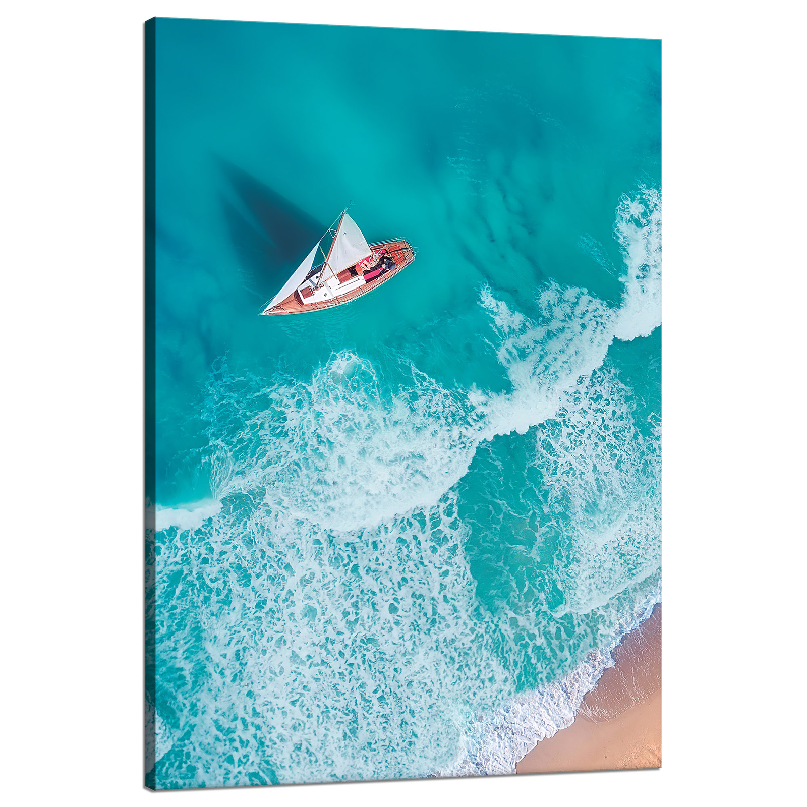 Canvas Print Sailboat Waves Sand Shore 80x120 cm