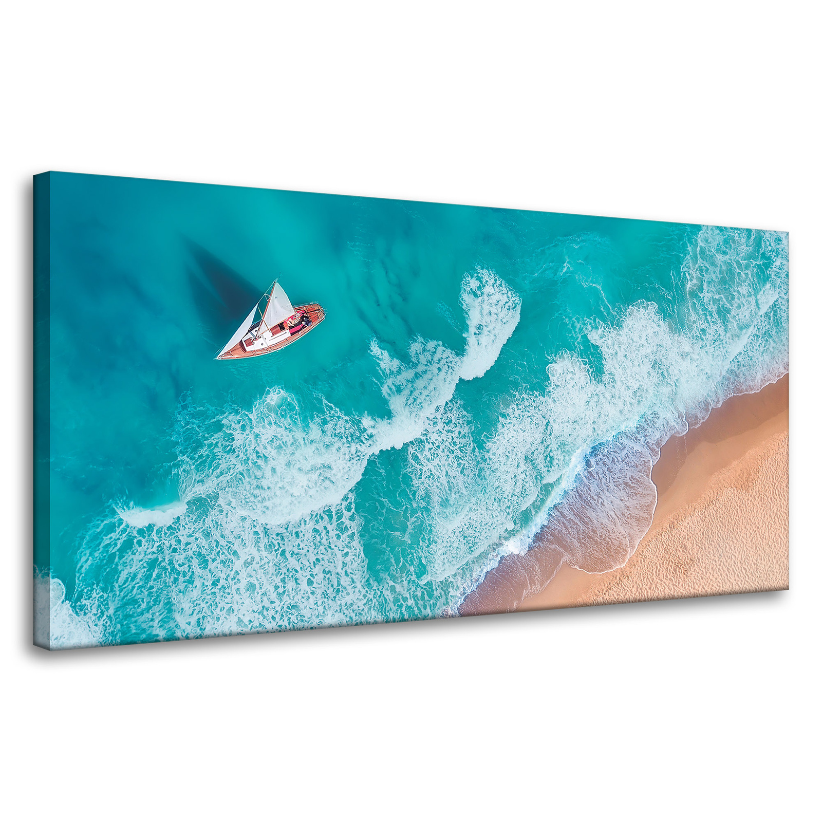 Canvas Print Sailboat Waves Sand Shore 80x40 cm