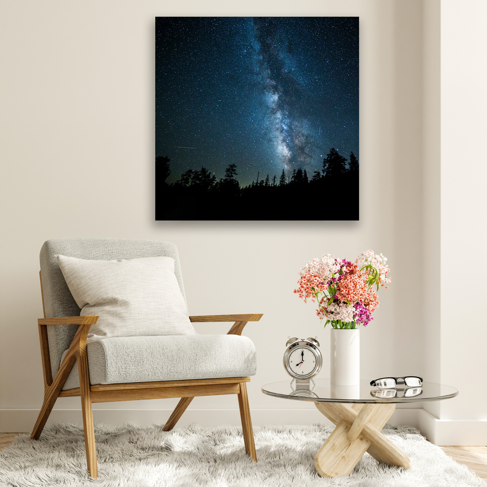 Canvas Print Space Night Forest Nebula 90x90