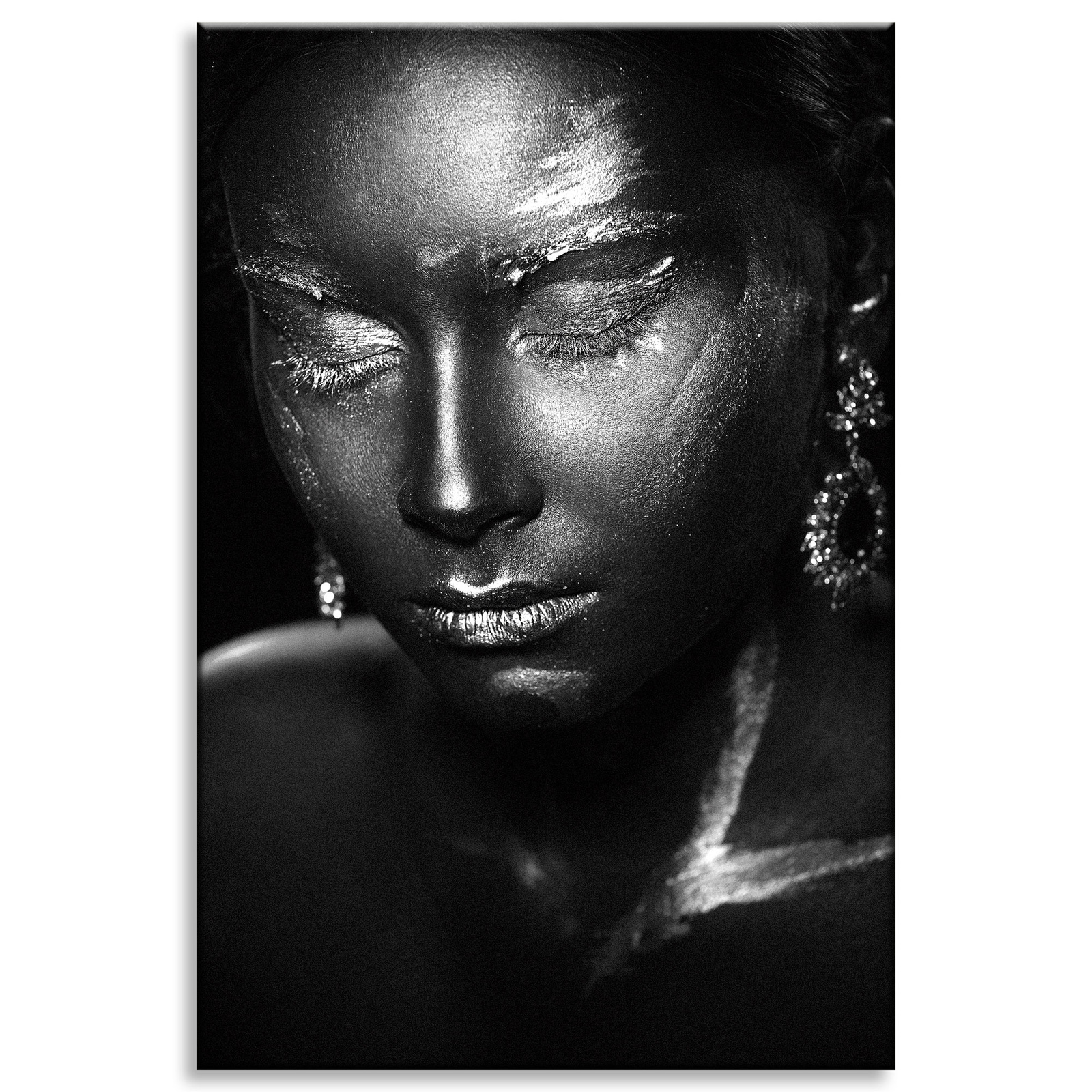 Canvas Print Woman Pensive Art Black 80x120 cm