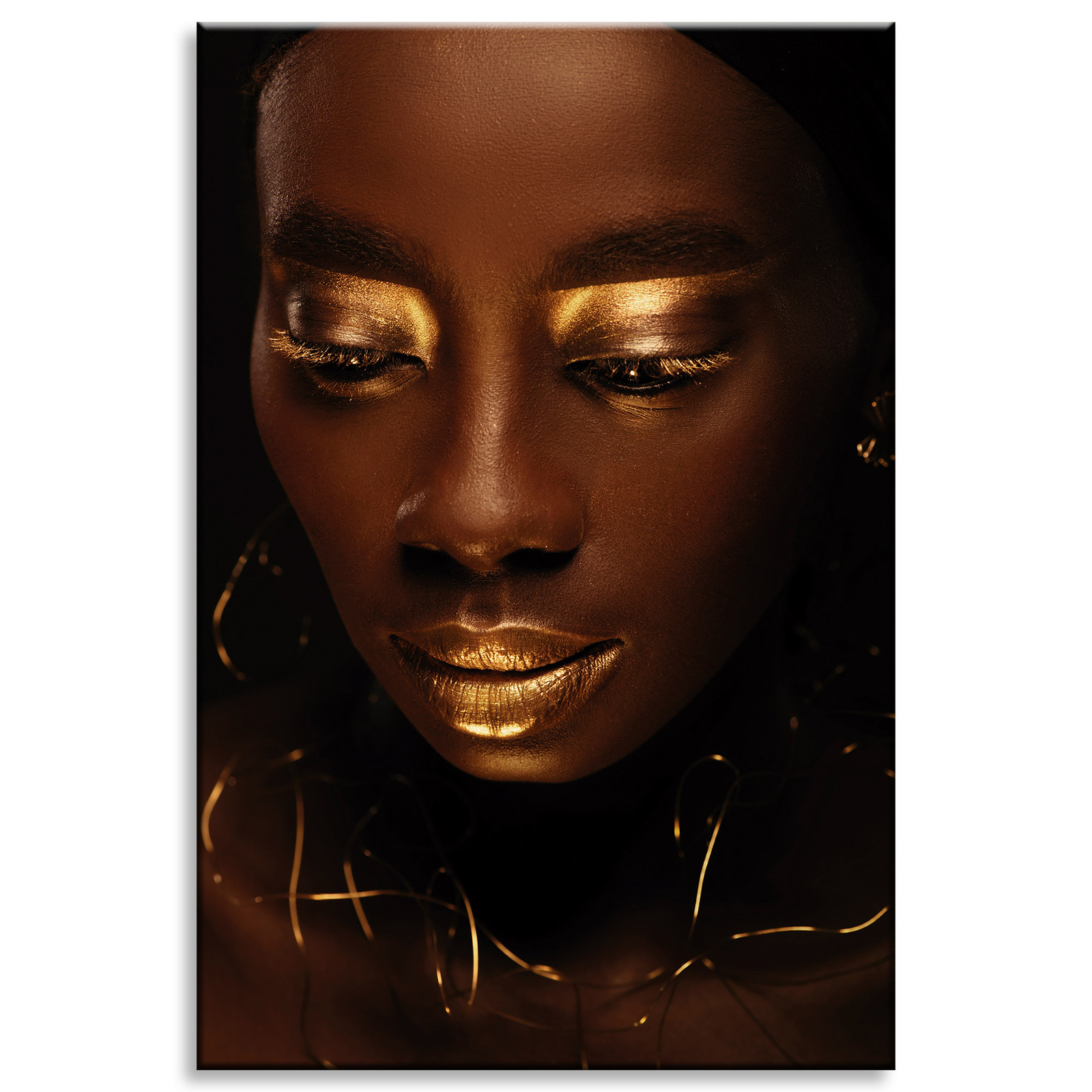 Canvas Print Woman's Face Golden Lips and Elements 80x120 cm