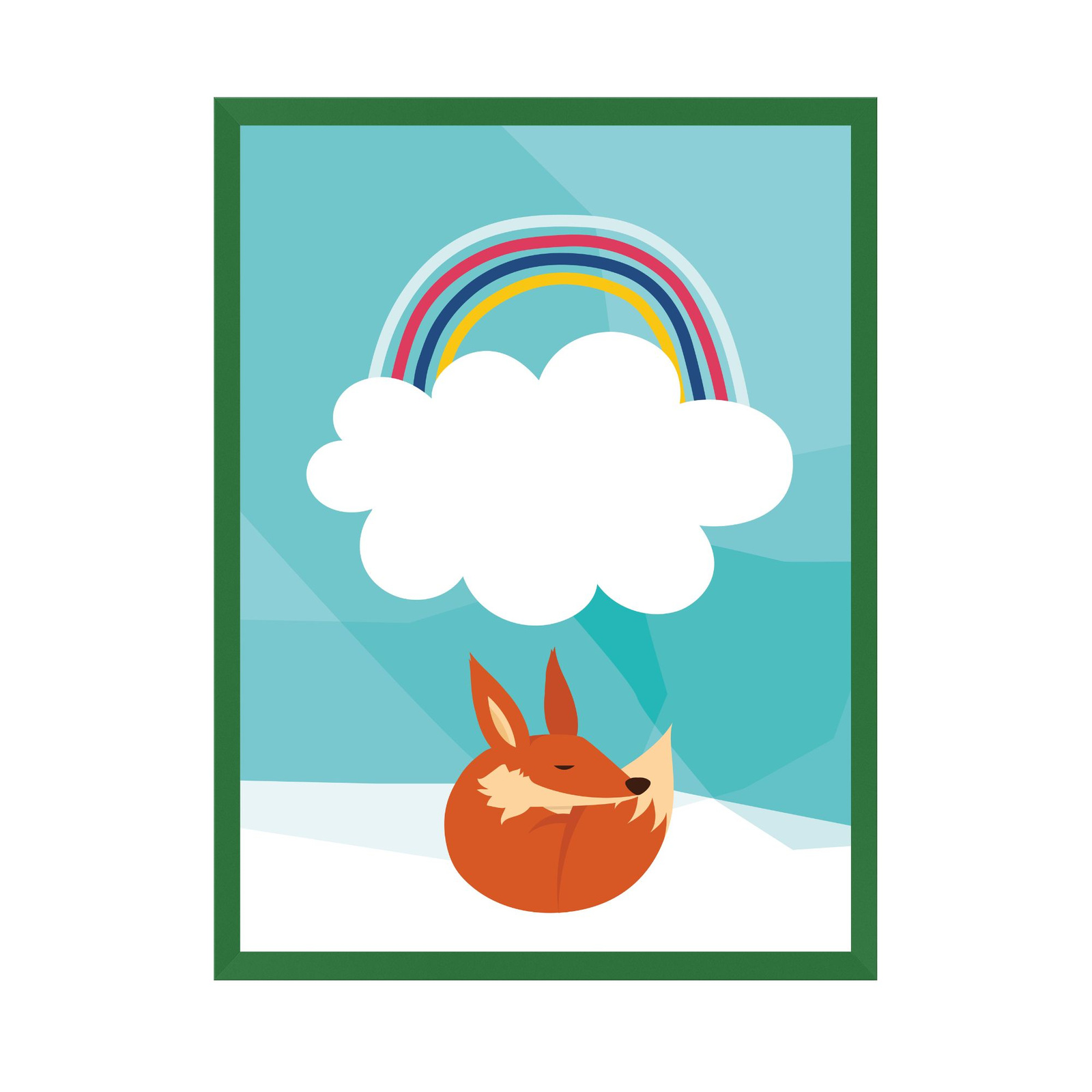 Children's fox rainbow poster 24X30 cm + green frame