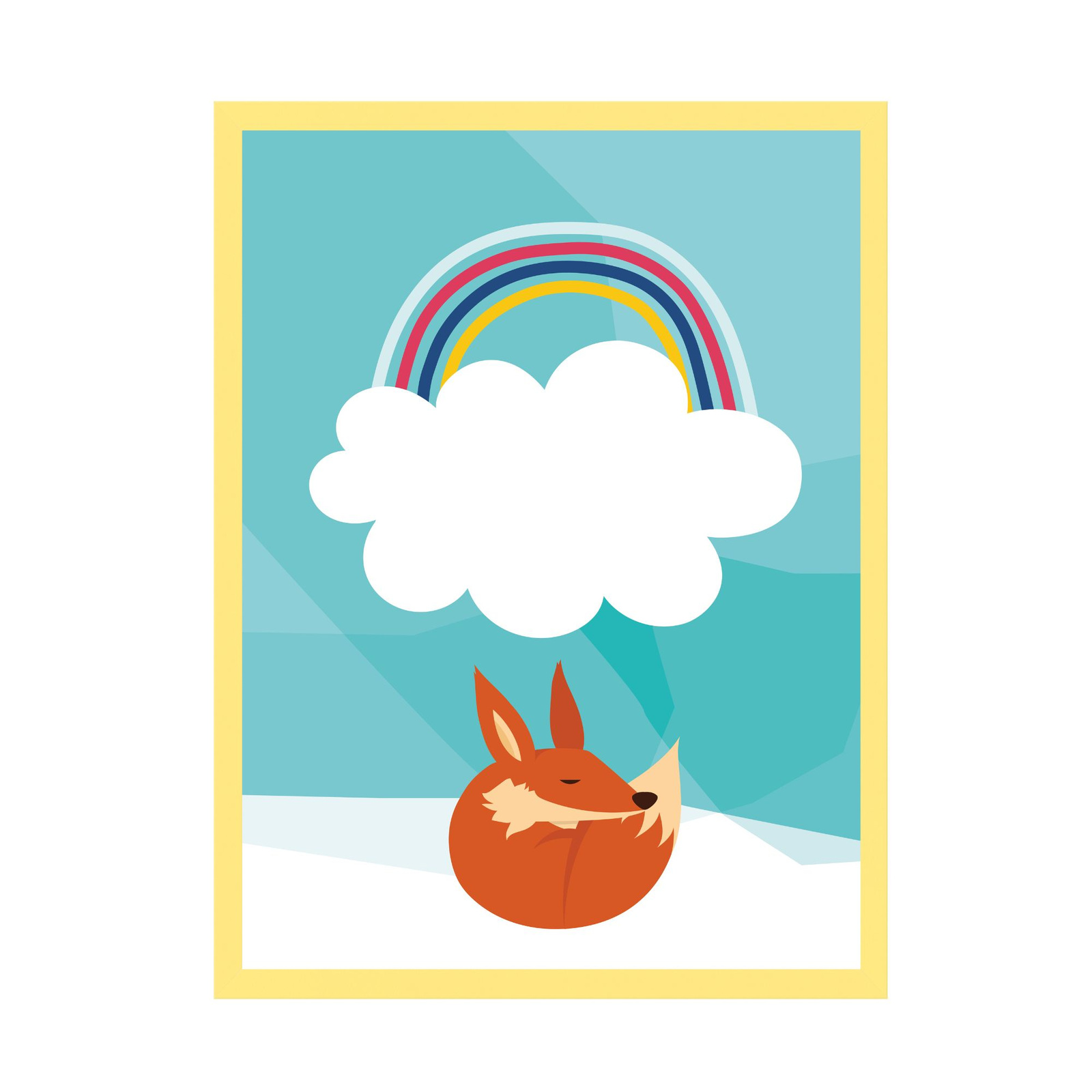 Children's fox rainbow poster 24X30 cm + yellow frame