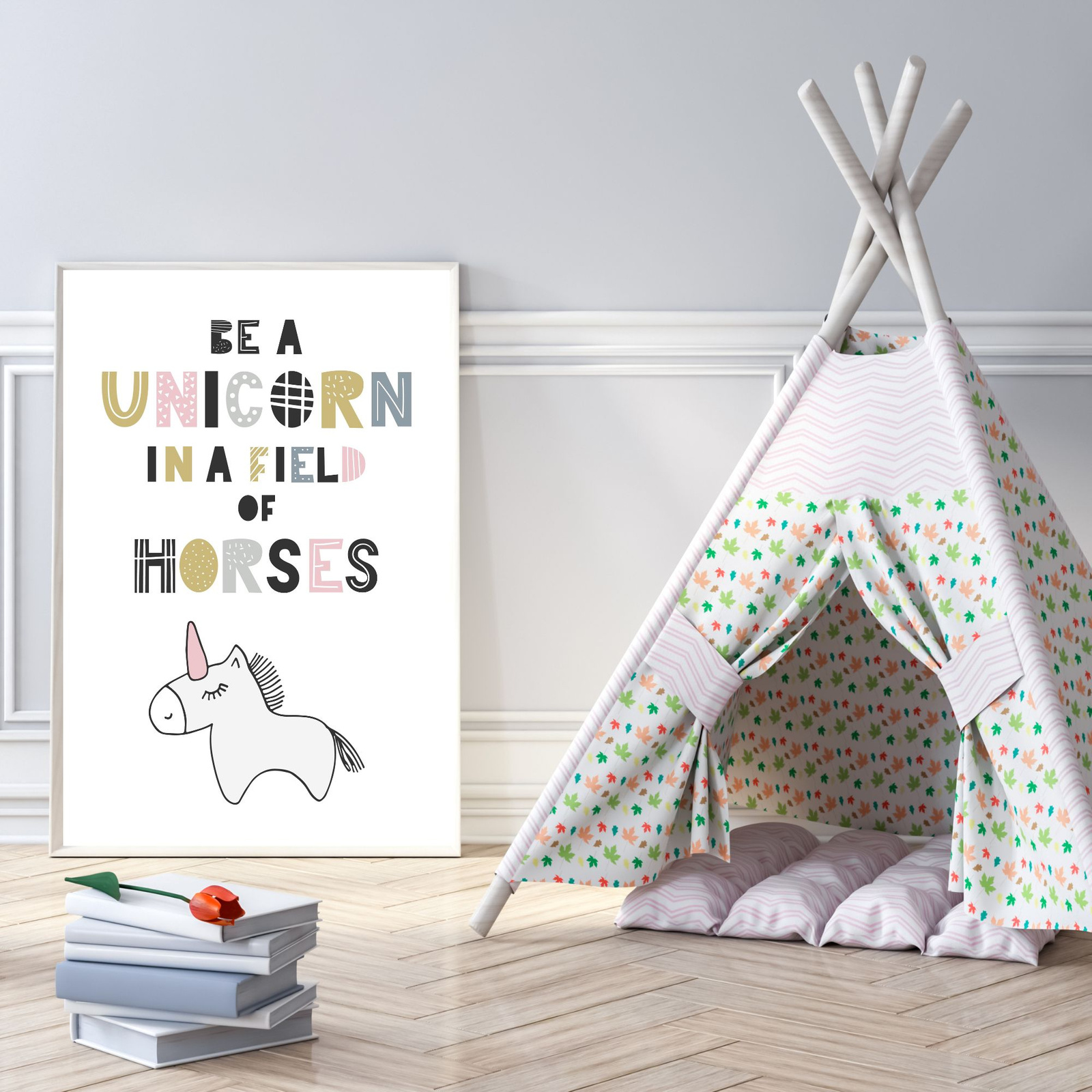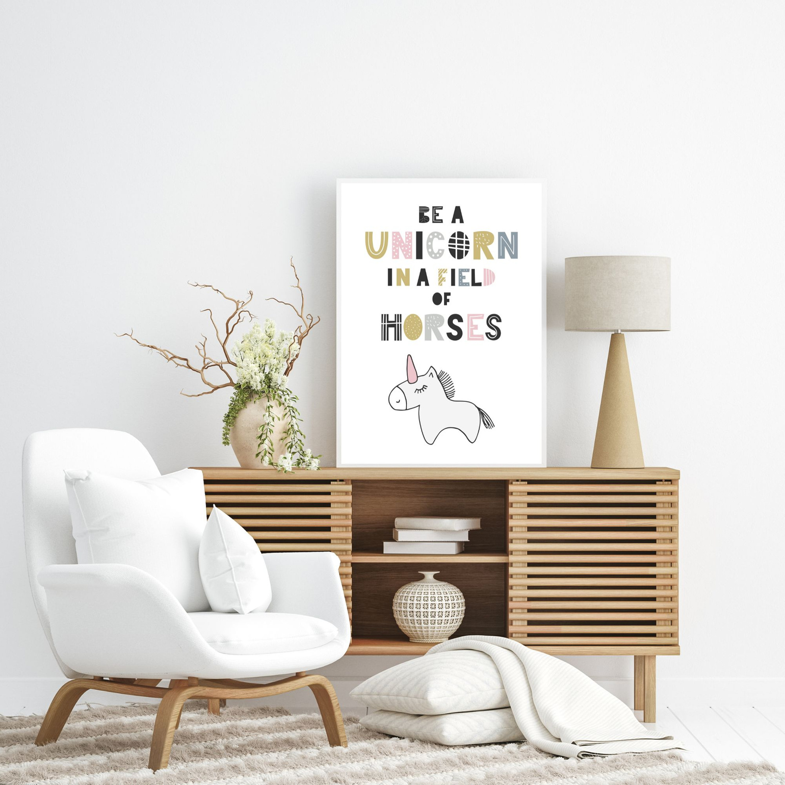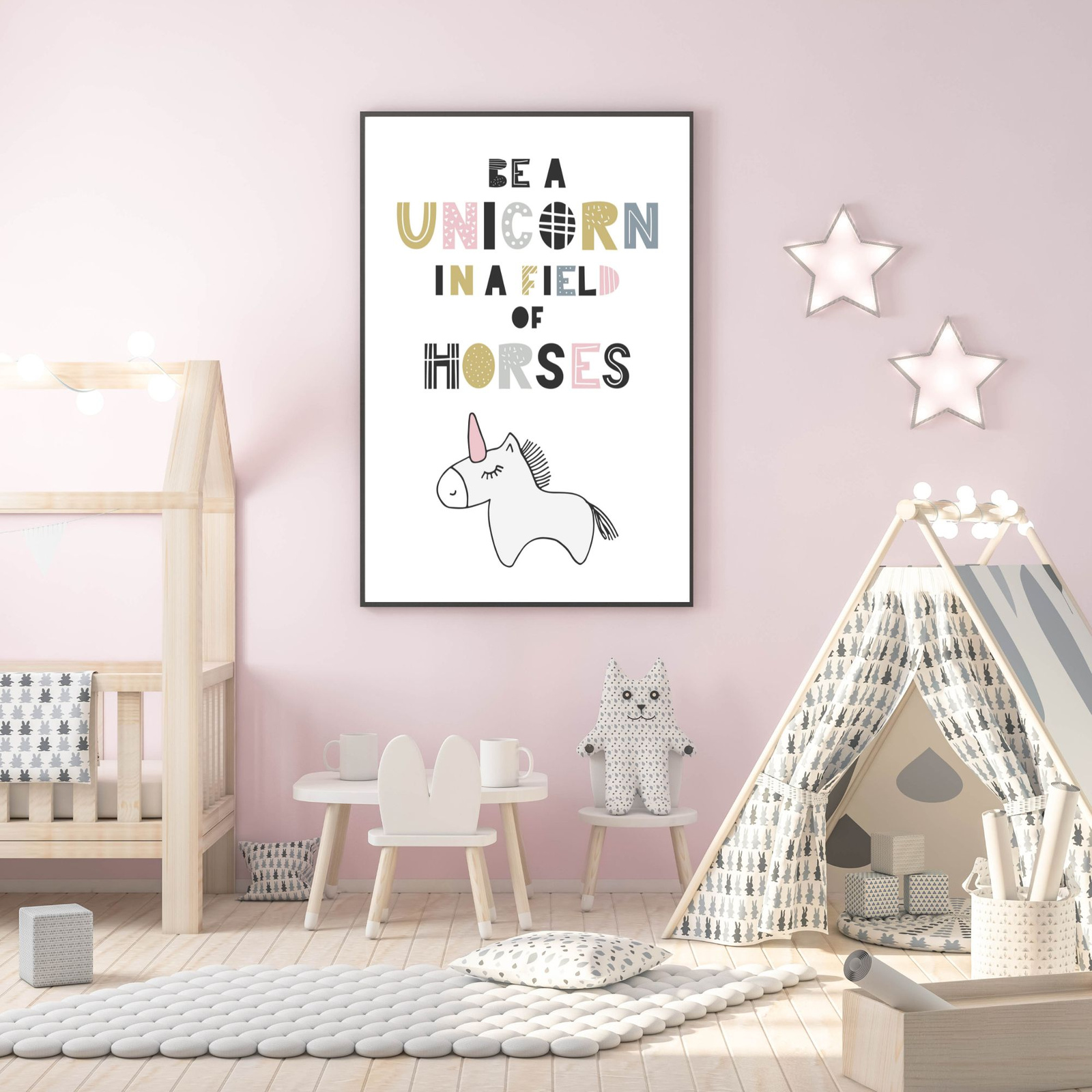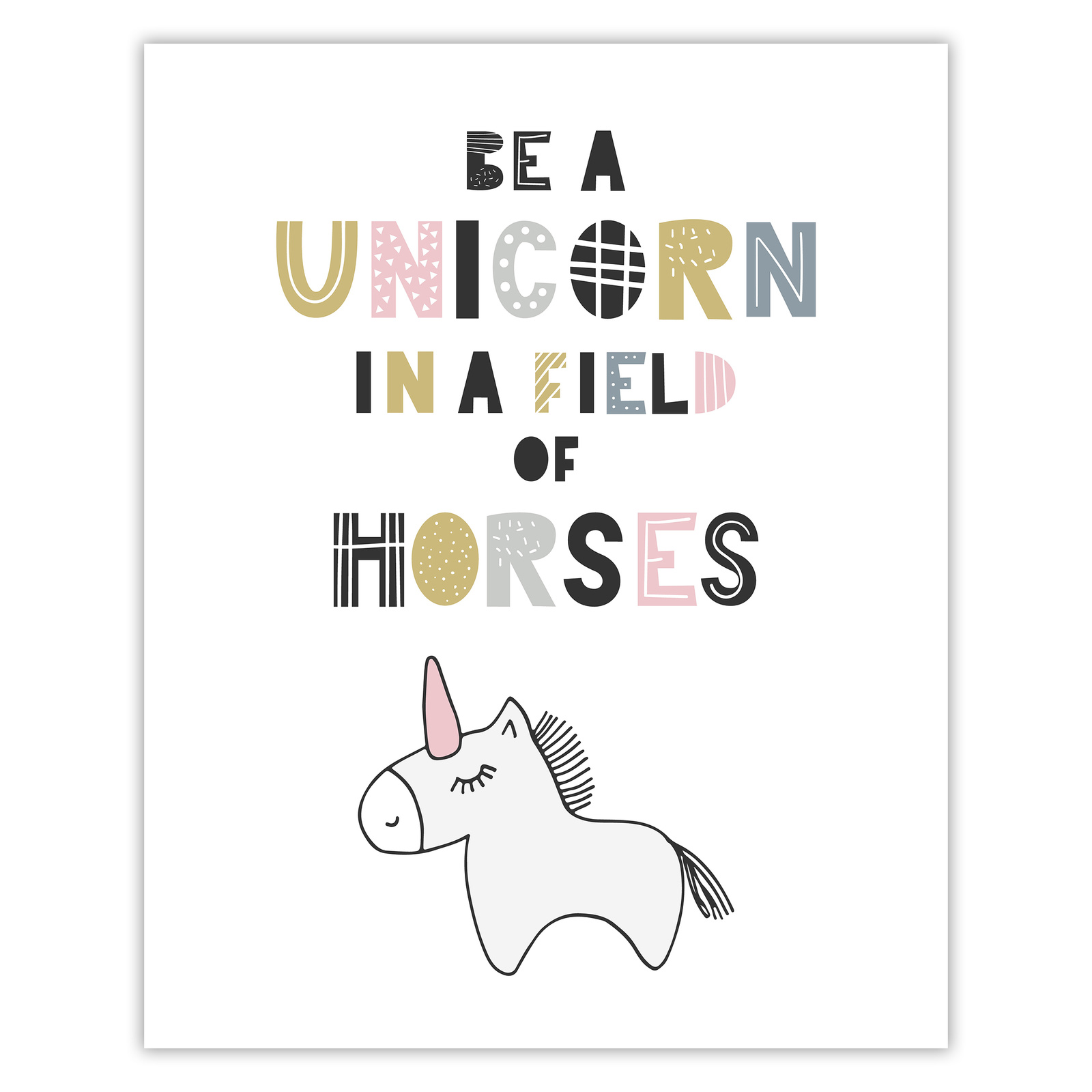 Children's poster Be a unicorn in a field of horses 40X50 cm + gold frame