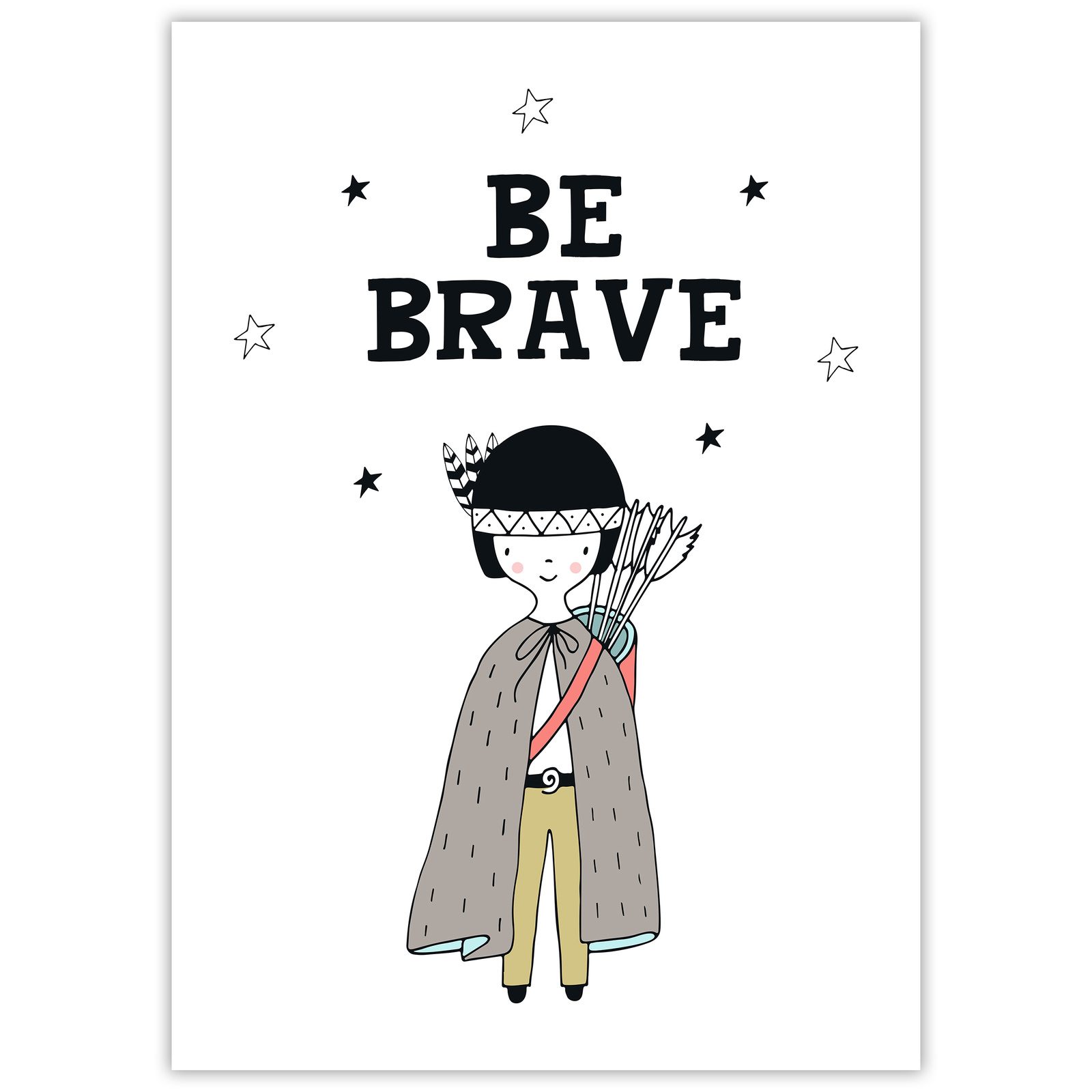 Children's poster Be barave Indian 21X29.7 cm + amaranth frame
