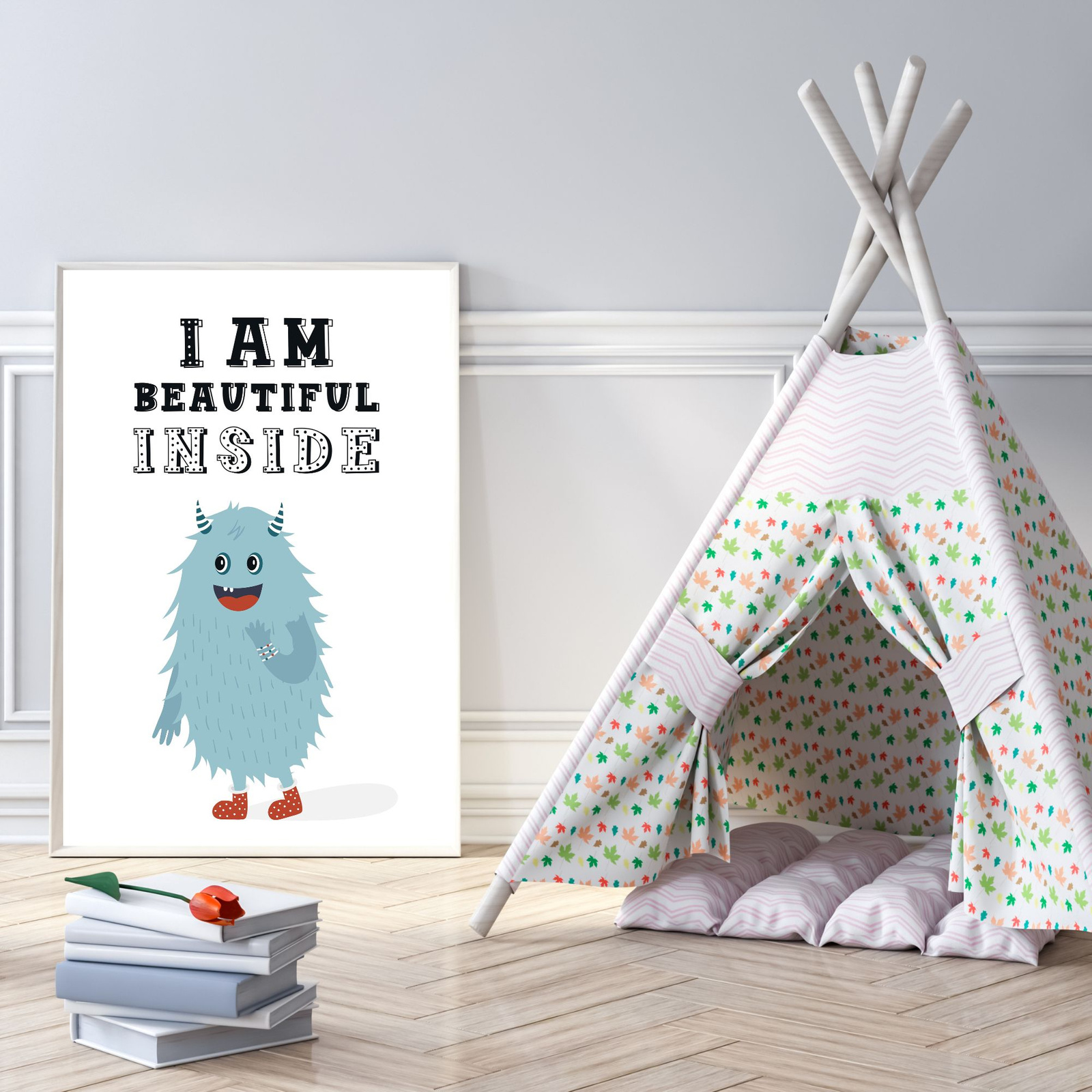 Children's poster I am beautiful inside 21X29.7 cm + gold frame