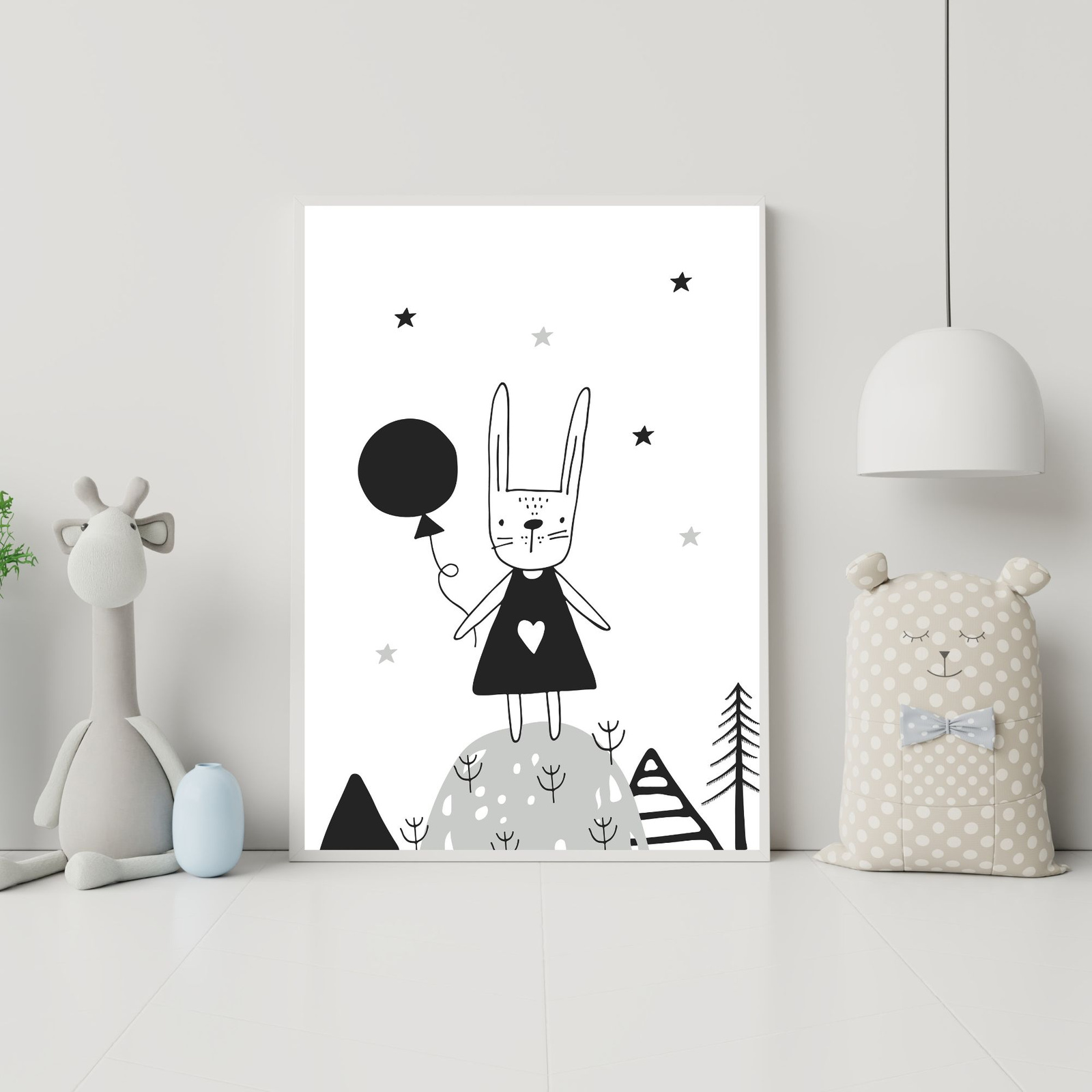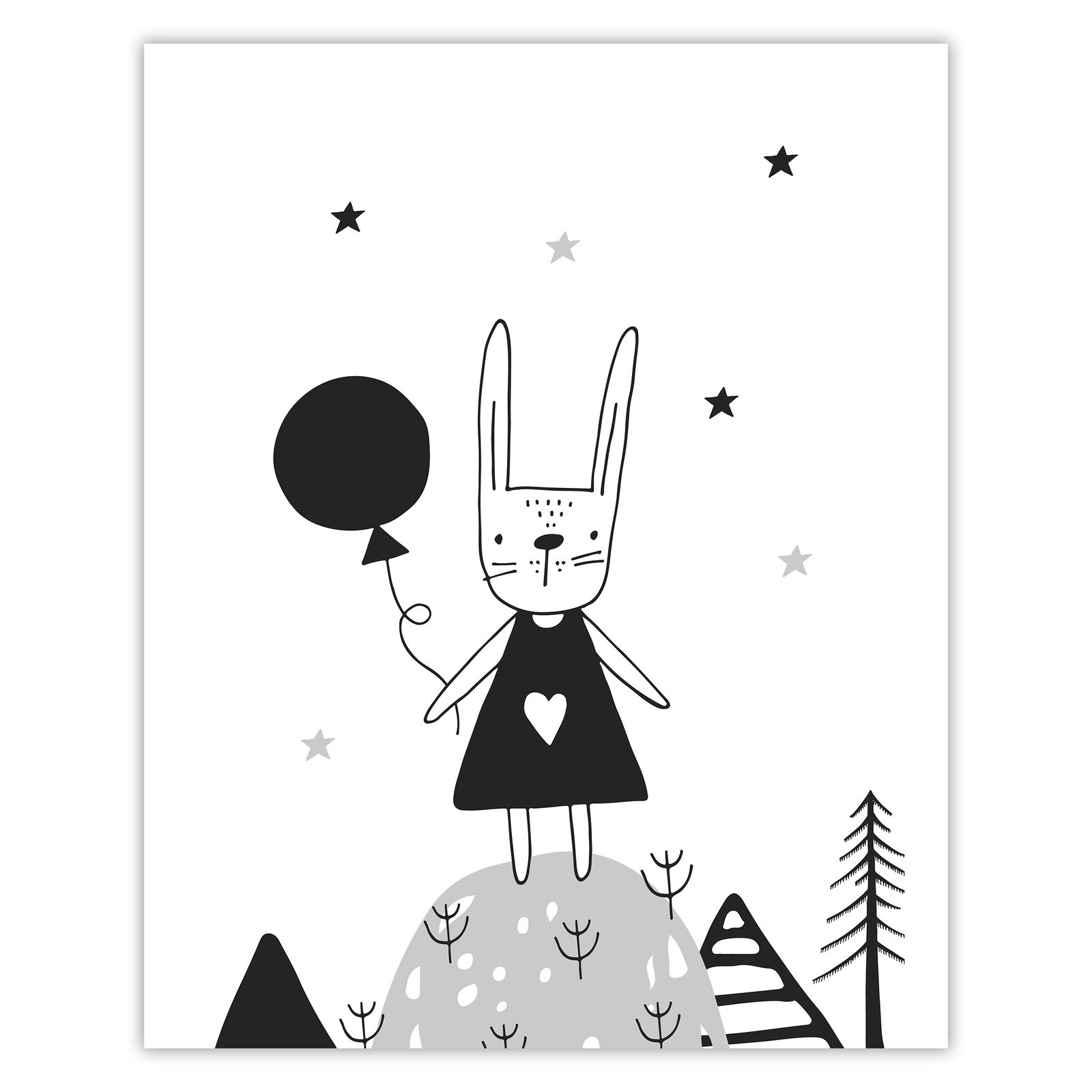 Children's poster Rabbit with a balloon 40X50 cm + gold frame