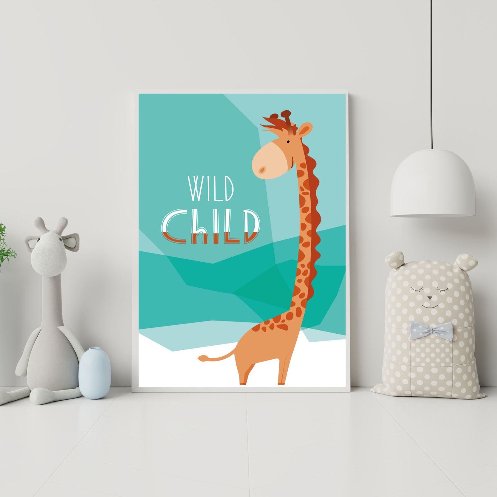 Children's poster Wild child Giraffe 30X40 cm + silver frame