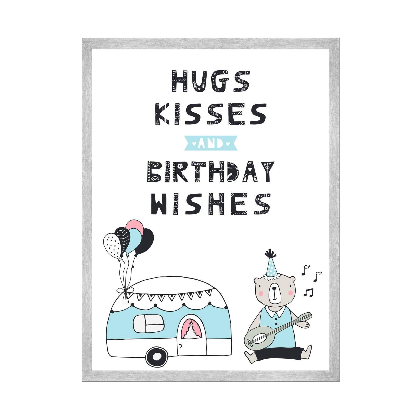 Hugs kisses Birthday Poster 40X50 cm + silver frame