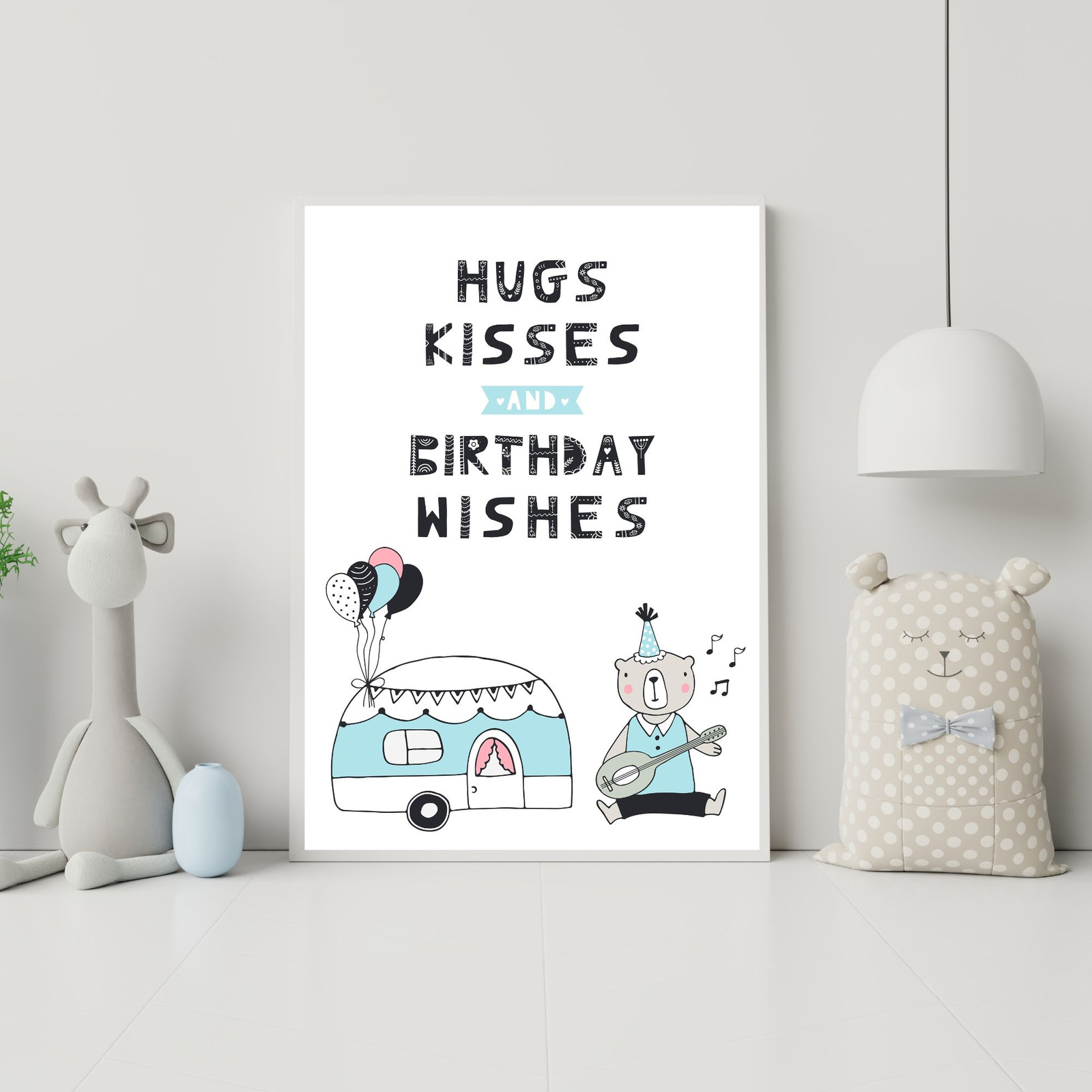 Hugs kisses Birthday Poster 21X29.7 cm + turquoise sea frame