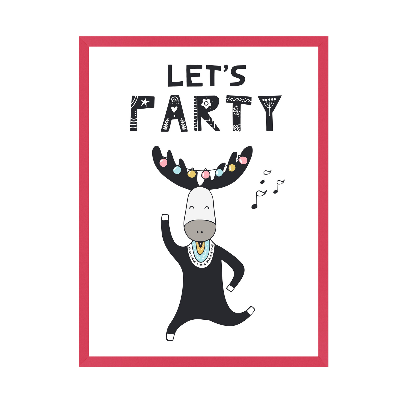 Let's party Birthday Poster 24X30 cm + amaranth frame