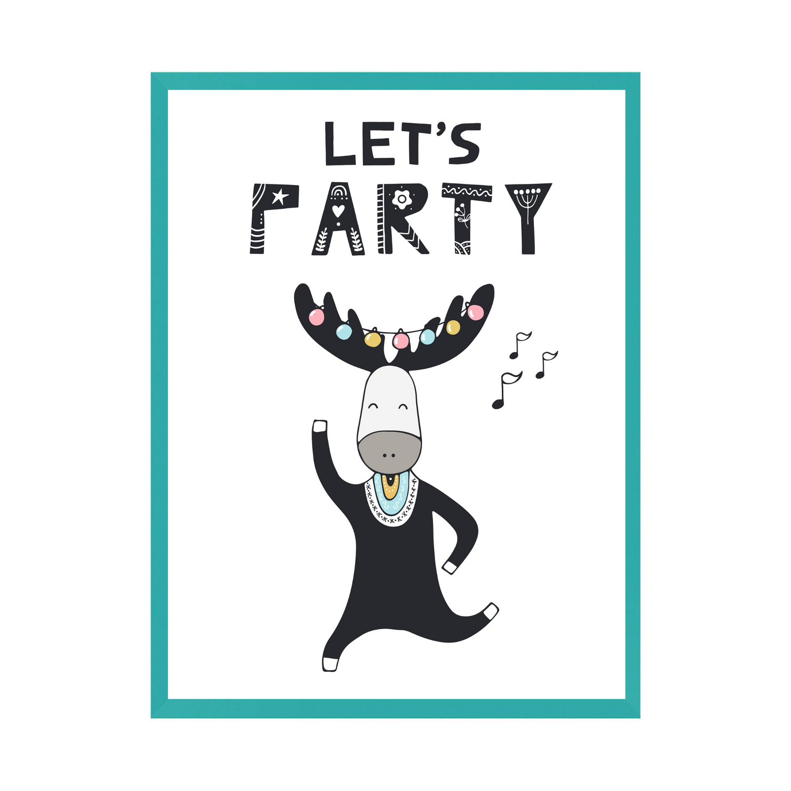 Let's party Birthday Poster 30X40 cm + turquoise sea frame