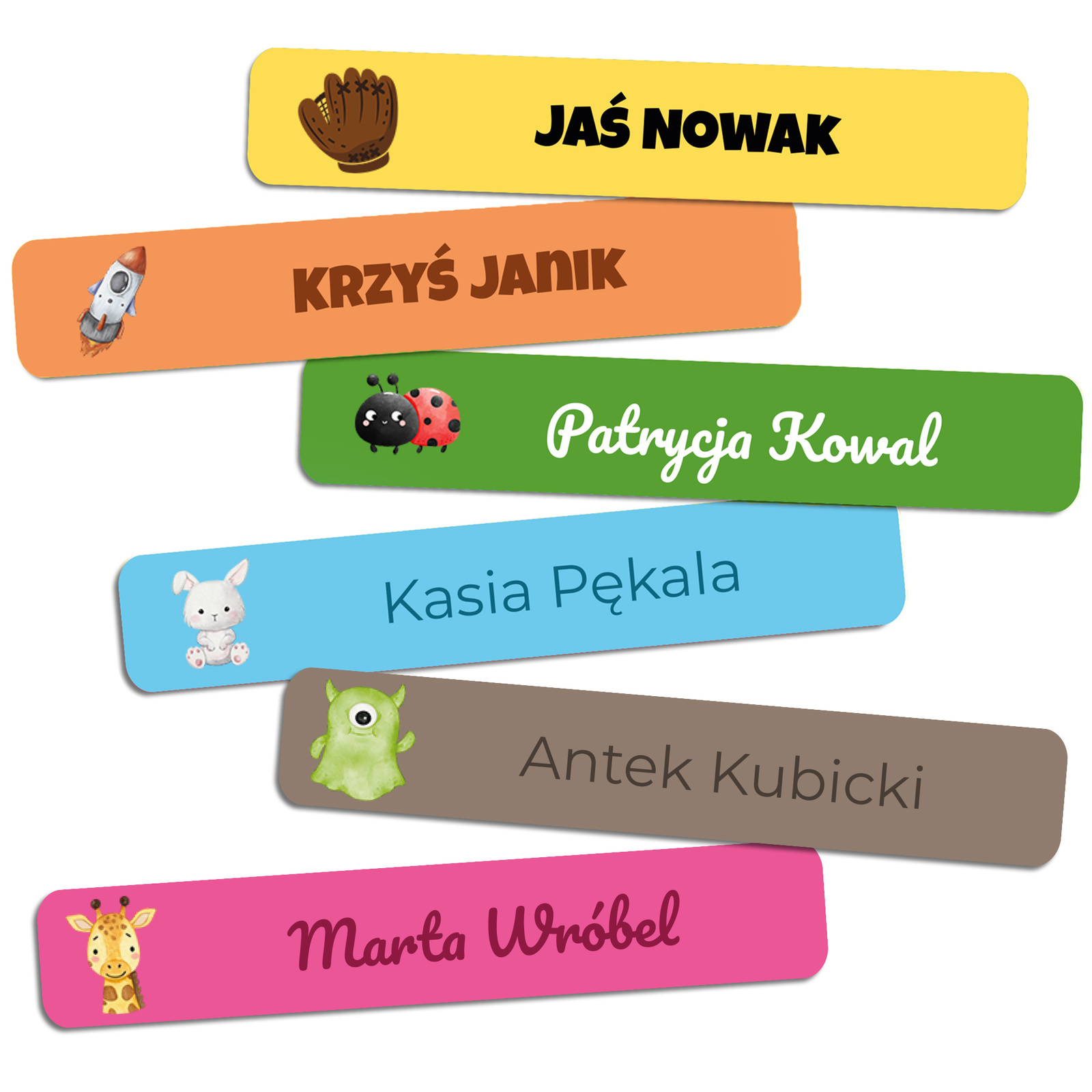 1. The name or text to appear on the stickers (e.g. “Ola Nowak”, “Ladybug Group”, “Kuba – Class 2B”)