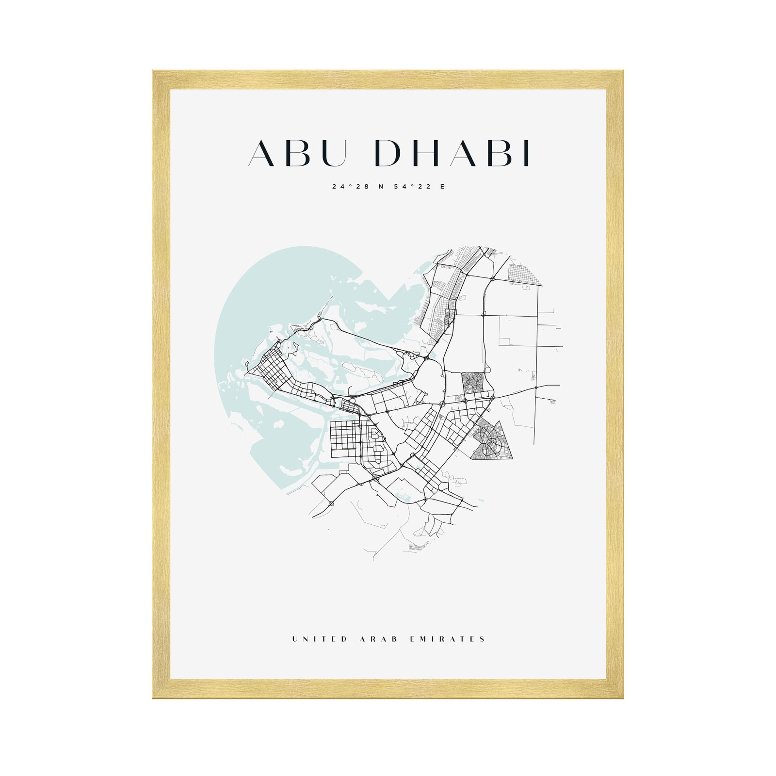 Poster Abu Dhabi city map heart 40X50 cm + gold frame