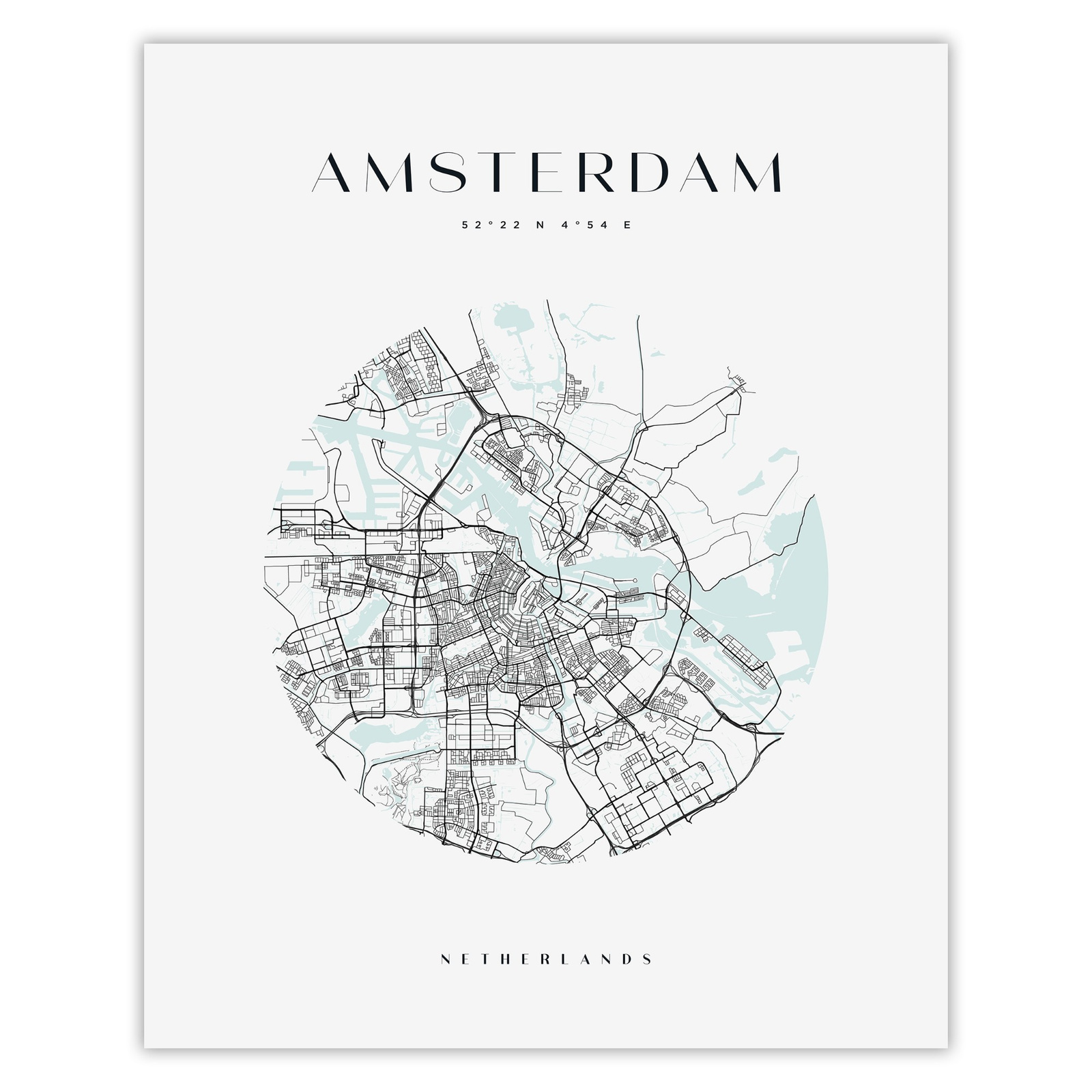 Poster Amsterdam city map circle 40X50 cm + gold frame