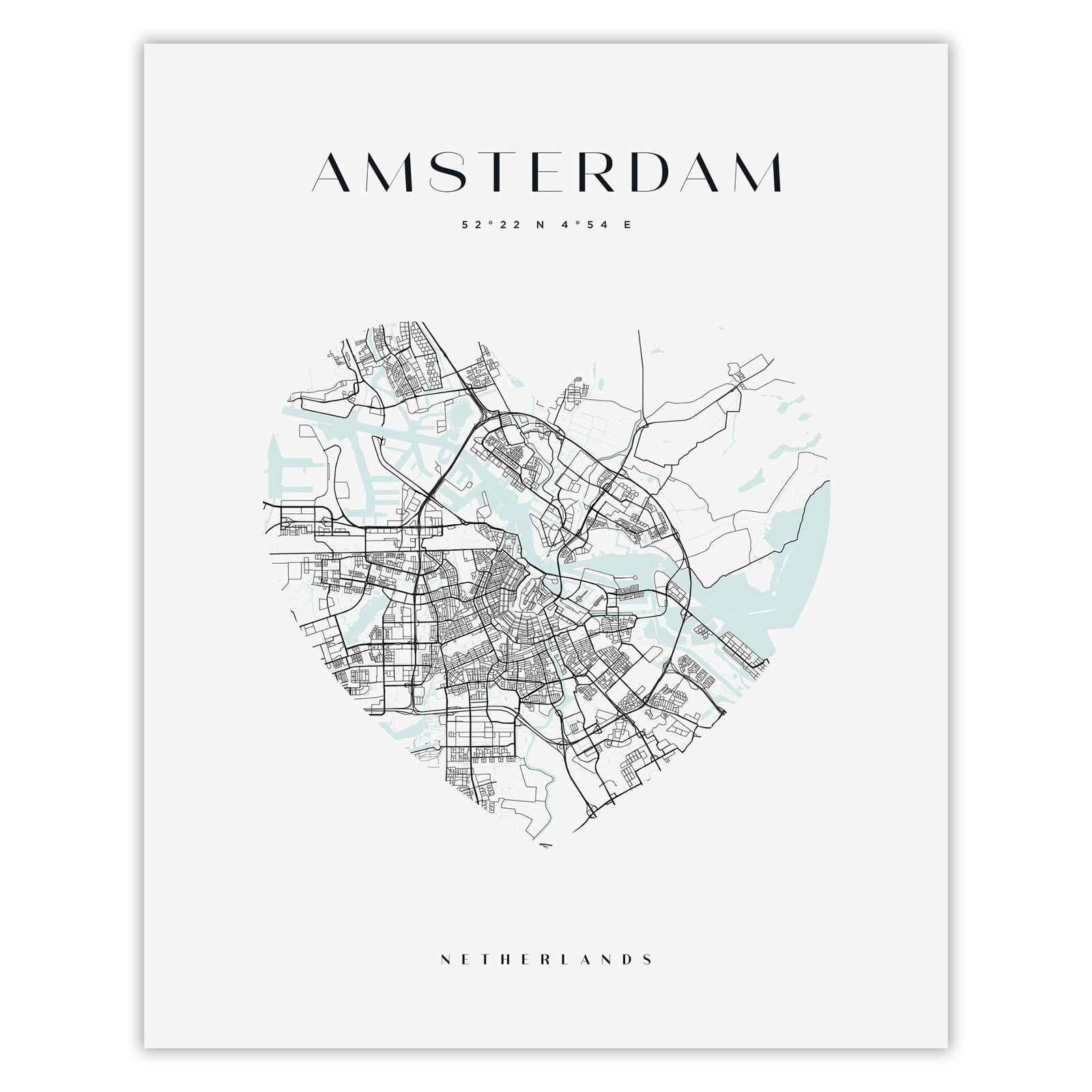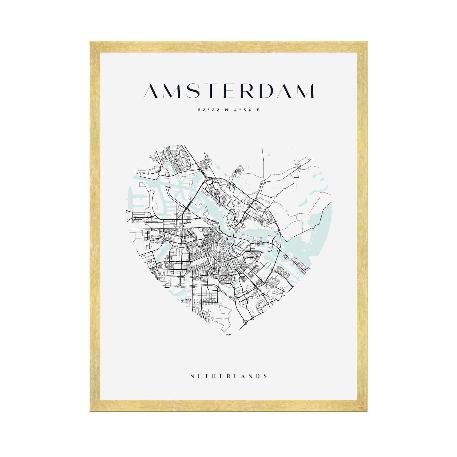 Poster Amsterdam city map heart 40X50 cm + gold frame