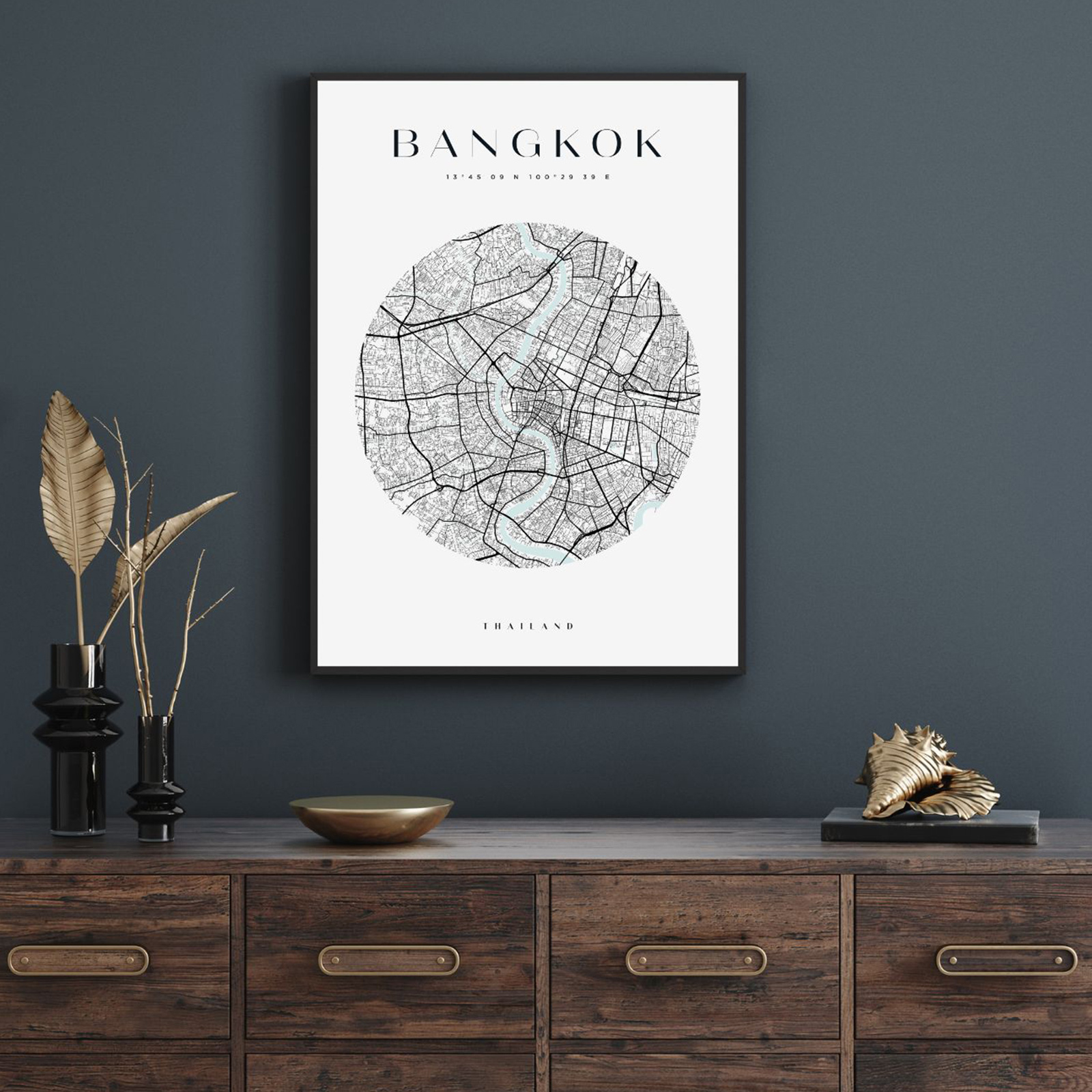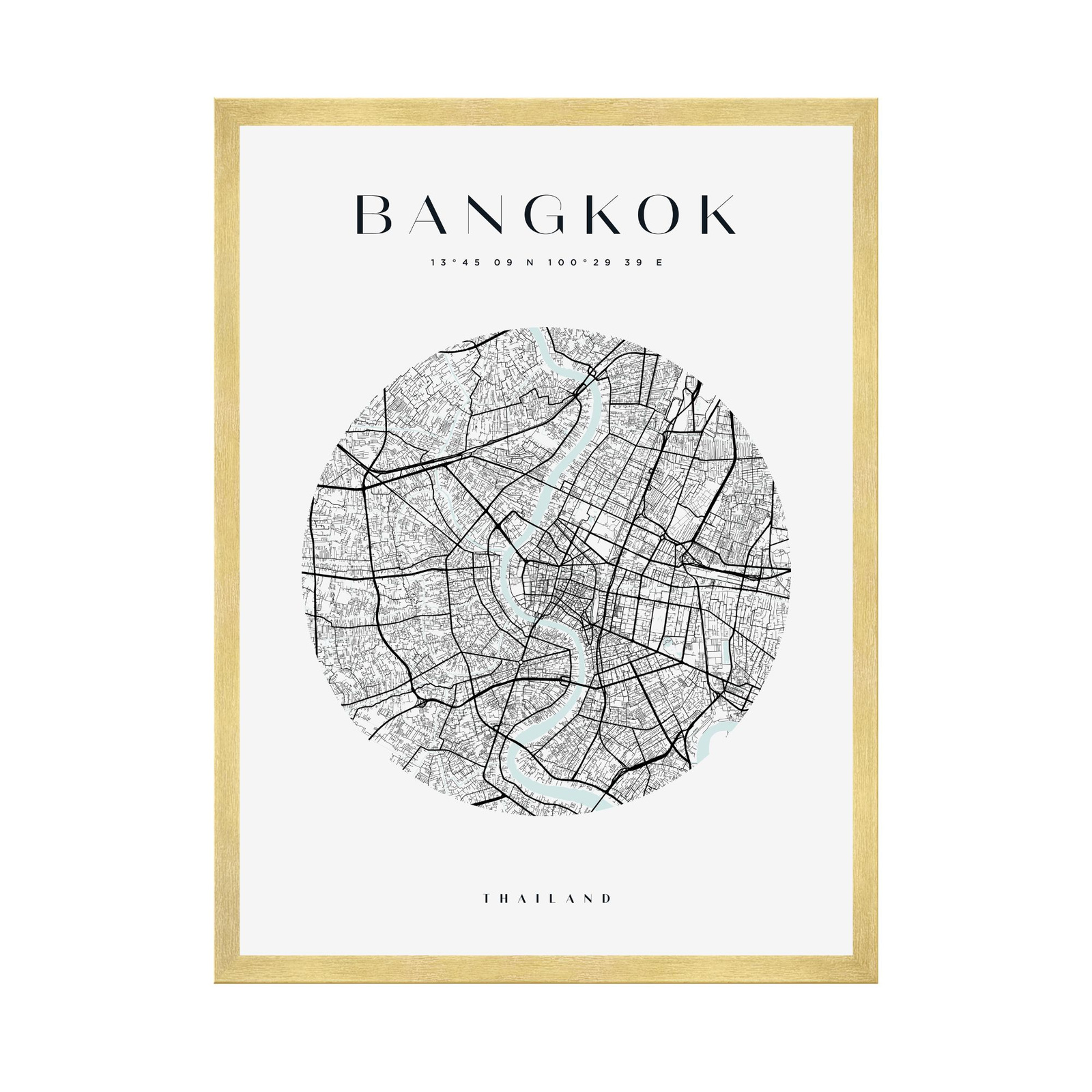 Poster Bangkok city map circle 40X50 cm + gold frame