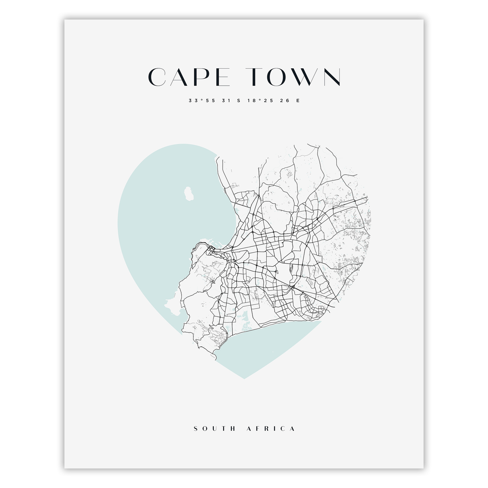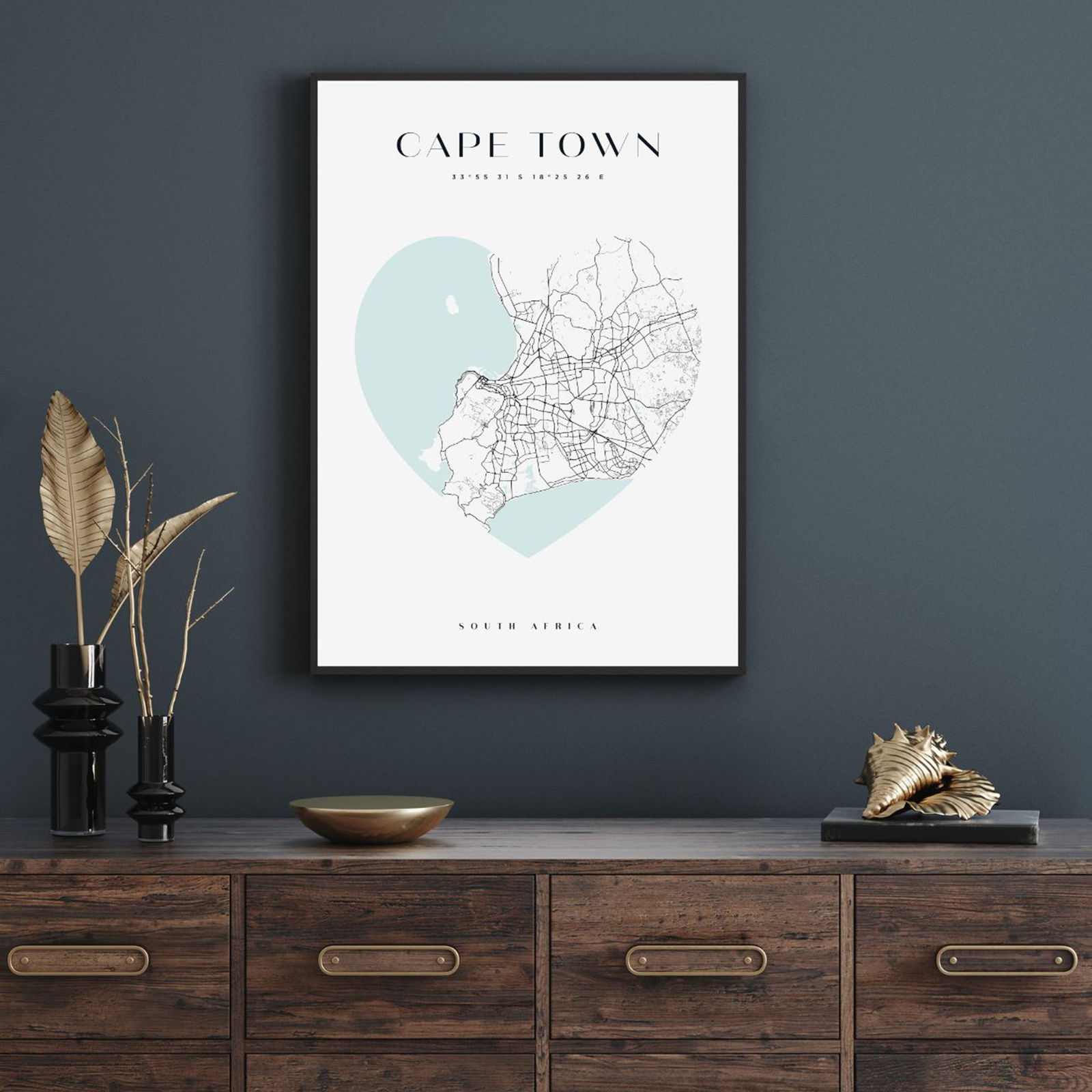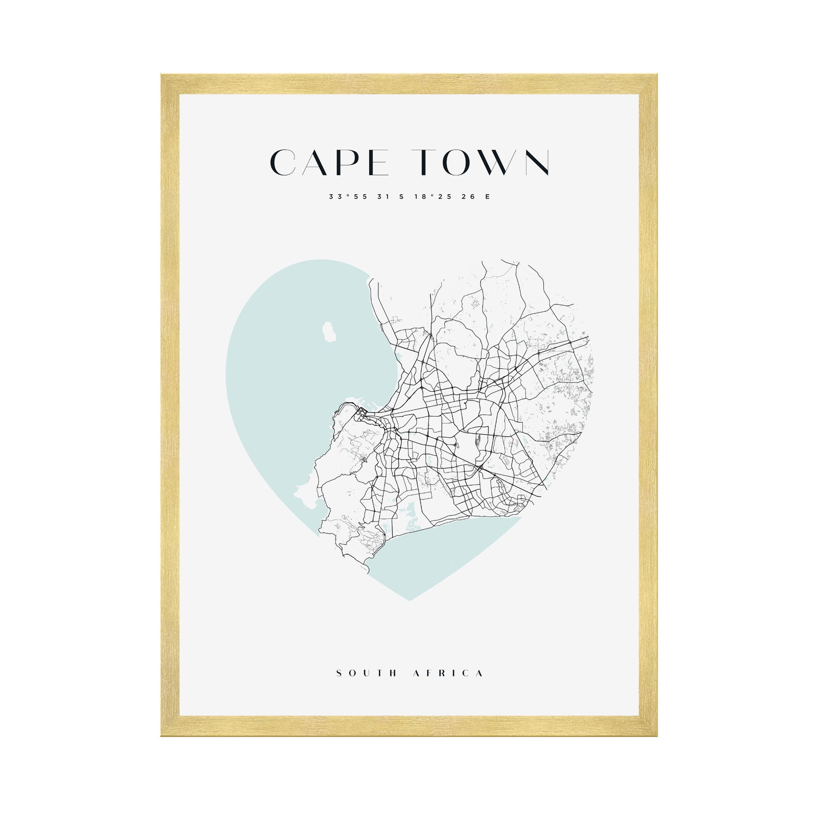 Poster Cape Town city map heart 40X50 cm + gold frame