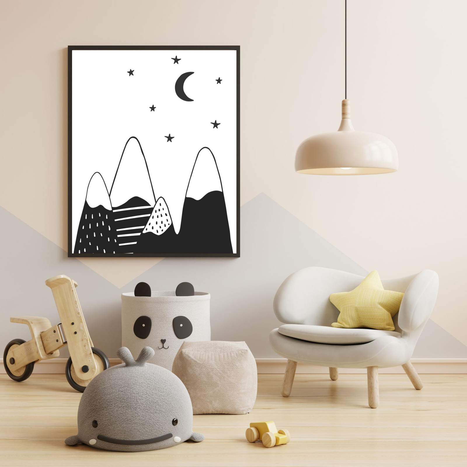 Poster Children's Mountains and Moon 40X50 cm + gold frame