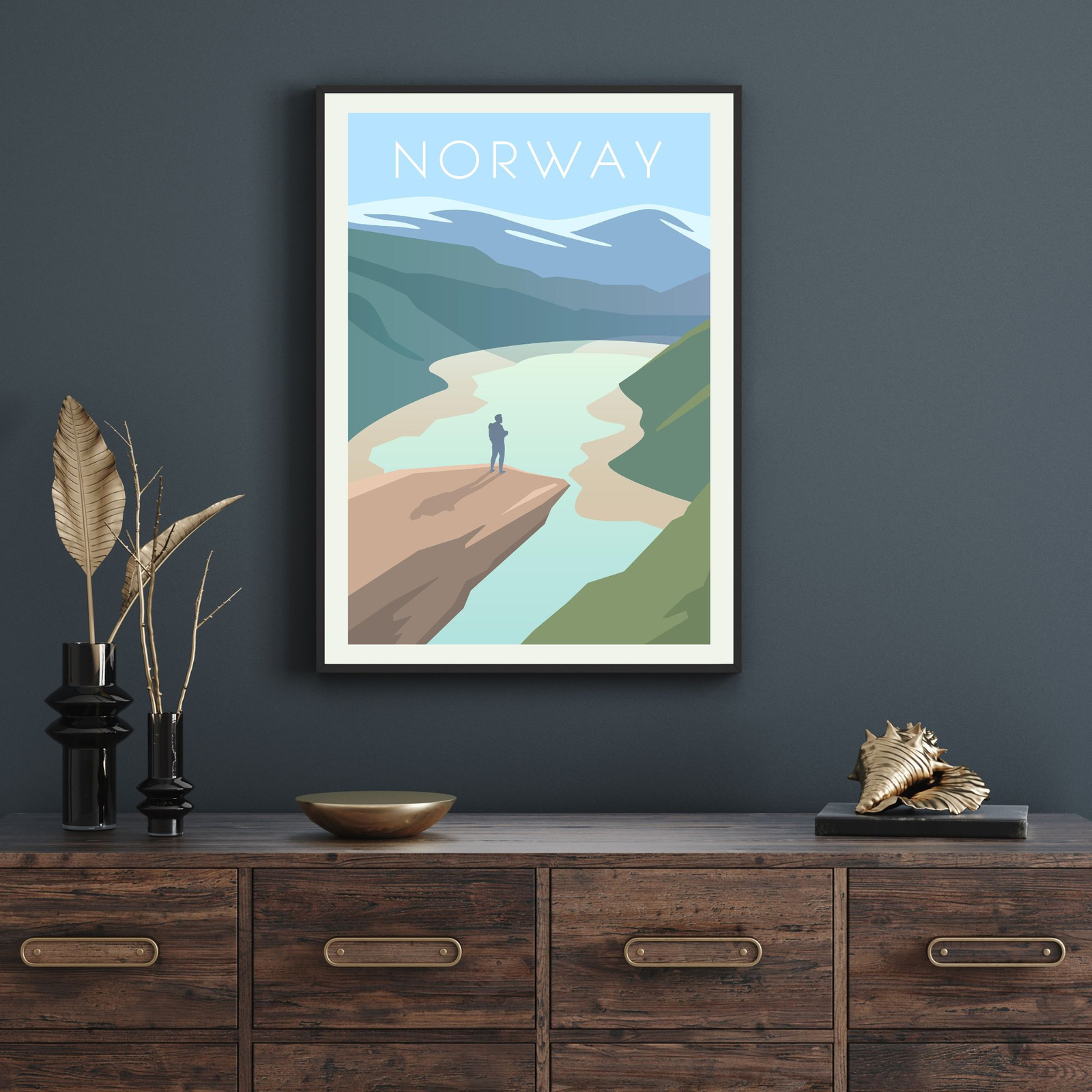 Poster Country of Norway 40X50 cm + gold frame