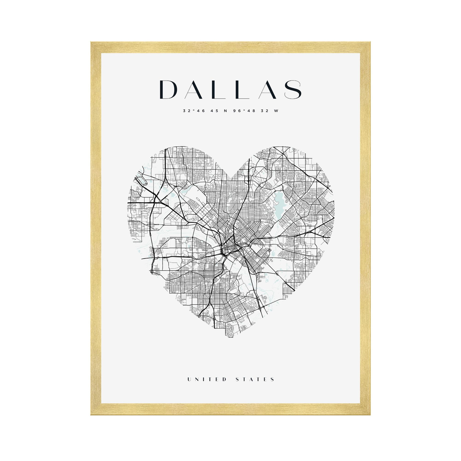 Poster New Orleans city map heart 40X50 cm + gold frame