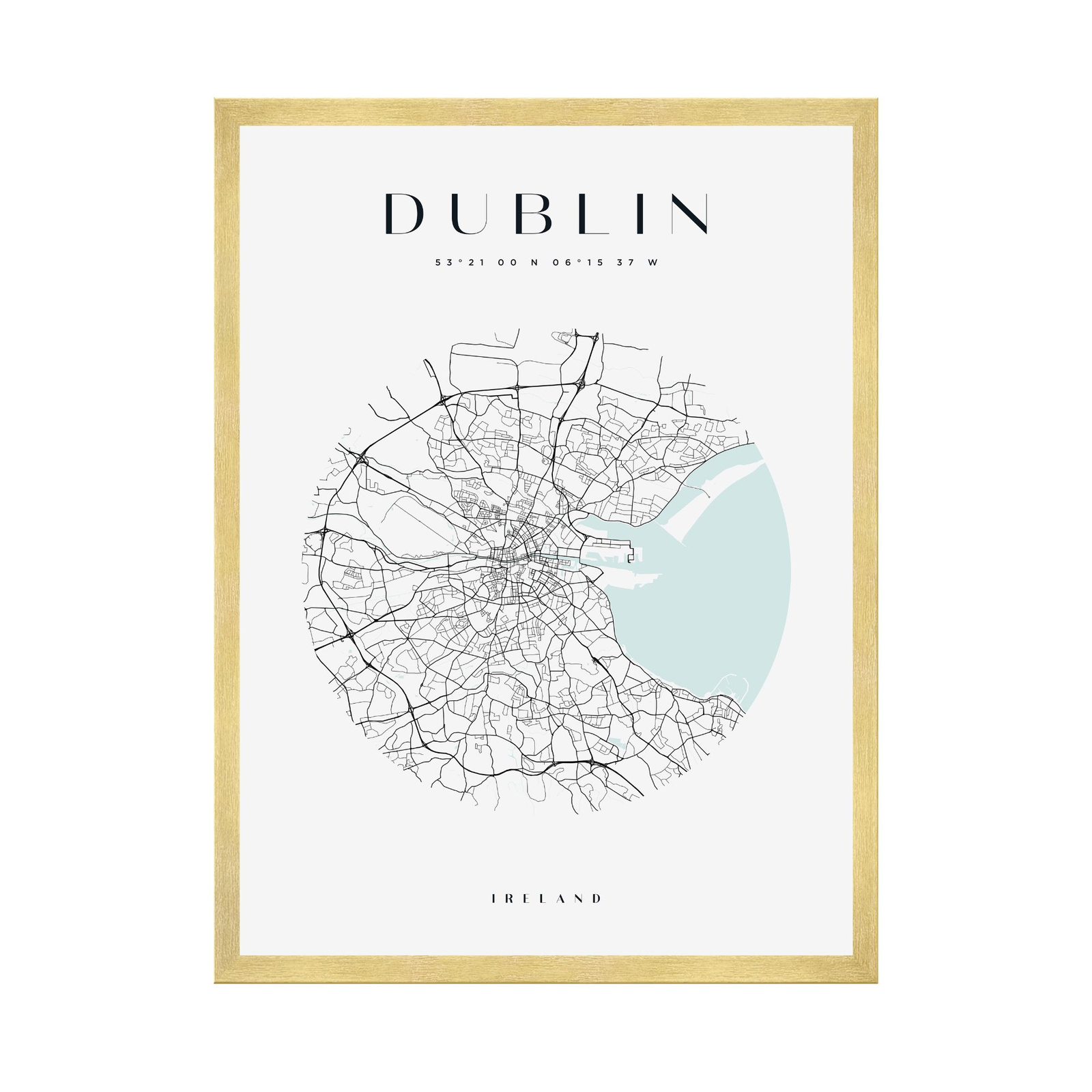 Poster Lisbon city map circle 40X50 cm + gold frame