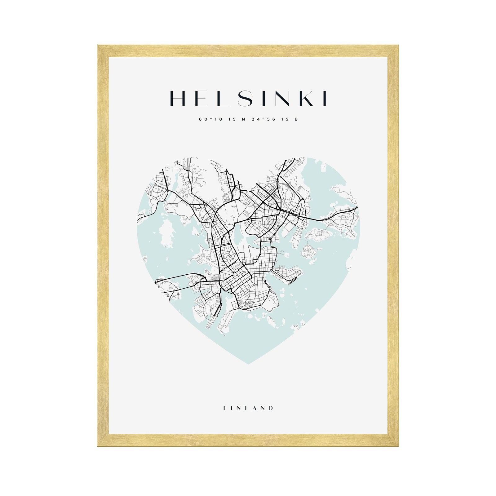 Poster Helsinki city map heart 40X50 cm + gold frame